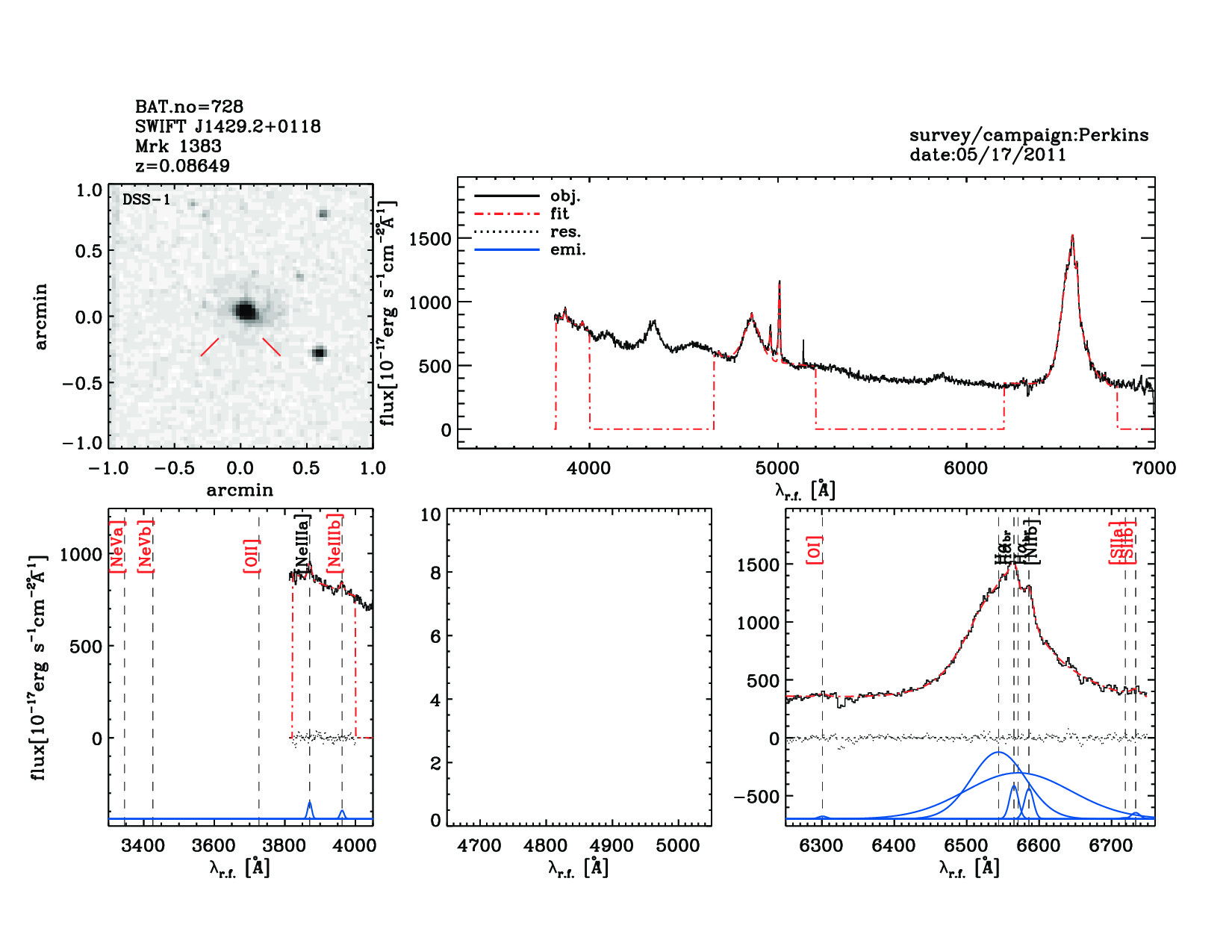 | 728 | SWIFT J1429.2+0118 | Mrk 1383 | 217.2775 | 1.2851 | 0.08649 | 8.20 | 17.80 | 8.10 | 16.70 | 20.00[20.00-20.00] | 2.18(0.11,0.05) | optical | NED |