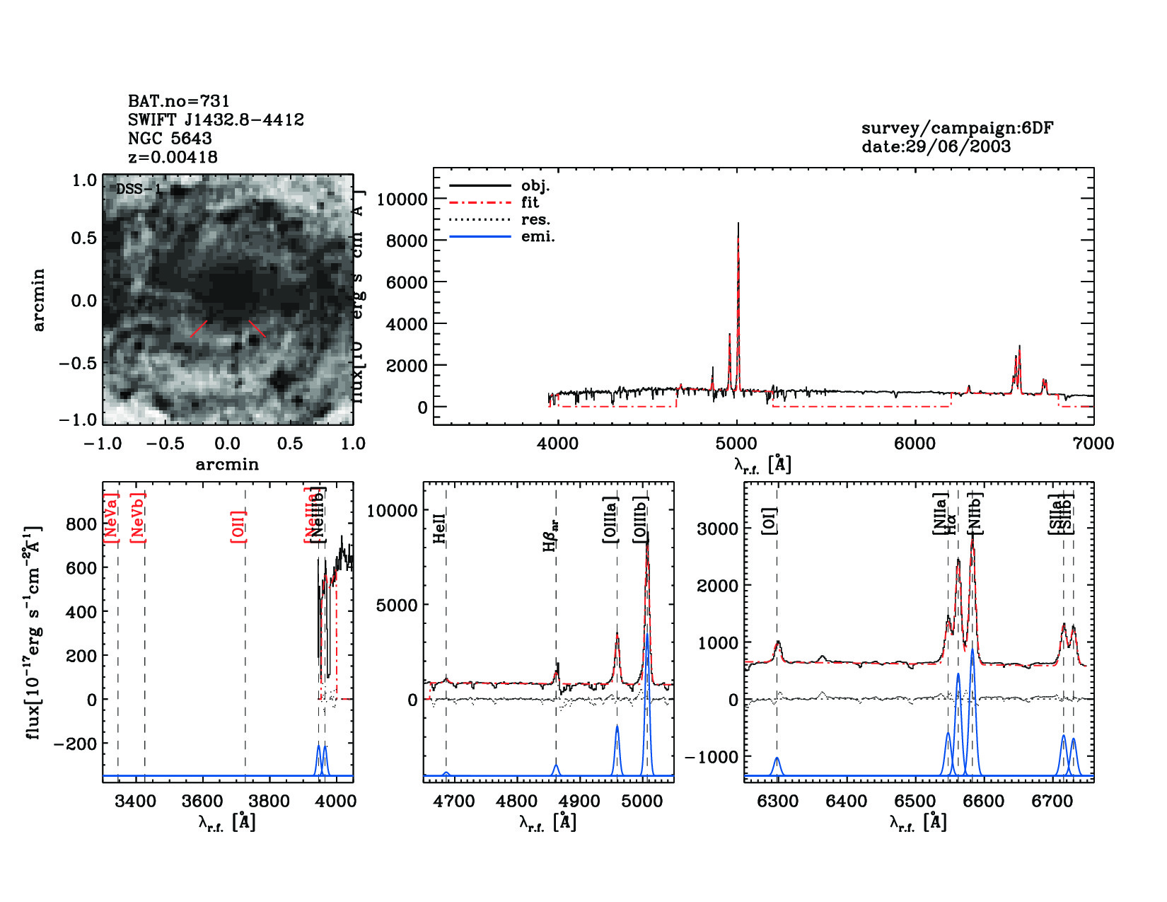 | 731 | SWIFT J1432.8-4412 | NGC 5643 | 218.1699 | -44.1746 | 0.00418 | 0.60 | 17.90 | 75.90 | 308.40 | 25.40[25.06-26.00] | 1.65(0.13,0.11) | optical | NED |