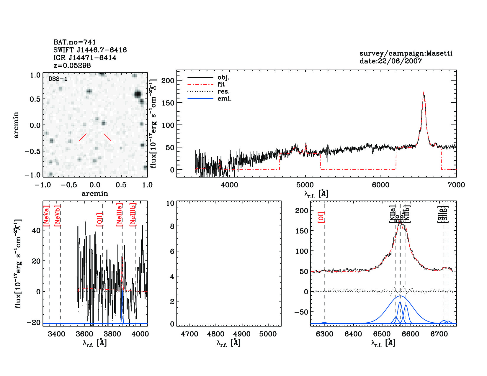 | 741 | SWIFT J1446.7-6416 | IGR J14471-6414 | 221.6175 | -64.2733333 | 0.05298 | 4.90 | 14.40 | 4.60 | 11.90 | 21.86[21.72-22.06] | 1.82(0.29,0.25) | optical | NED |