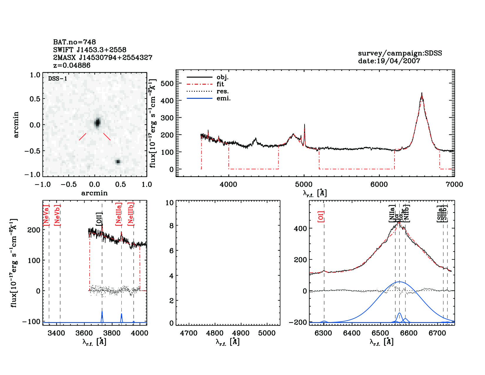 | 748 | SWIFT J1453.3+2558 | 2MASX J14530794+2554327 | 223.2833 | 25.9091 | 0.04886 | 10.80 | 24.00 | 10.80 | 21.90 | 20.00[20.00-20.00] | 1.86(0.07,0.08) | optical | NIR | NED |