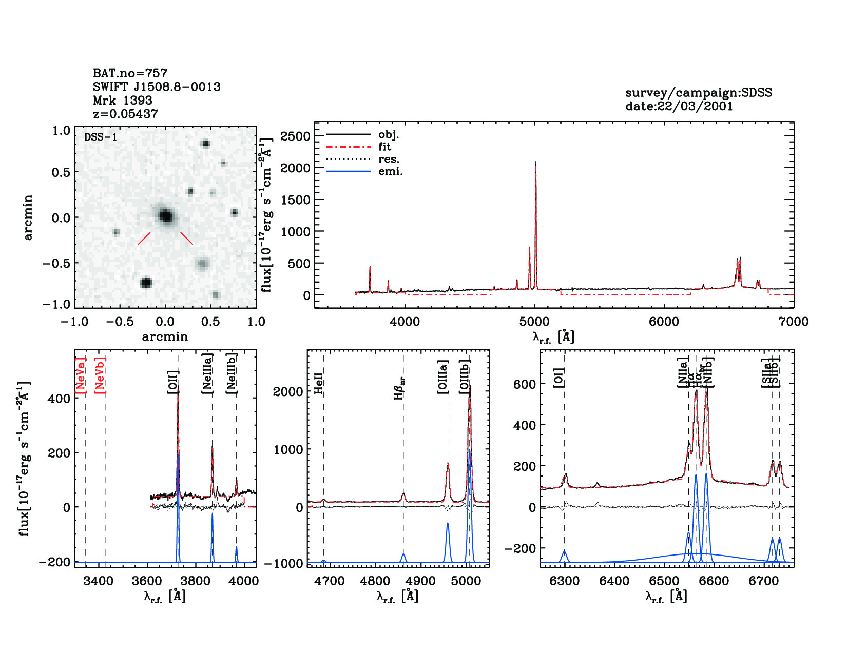 | 757 | SWIFT J1508.8-0013 | Mrk 1393 | 227.2248 | -0.197 | 0.05437 | 7.30 | 19.50 | 8.10 | 20.20 | 20.28[20.11-20.40] | 1.79(0.03,0.07) | optical | NED |