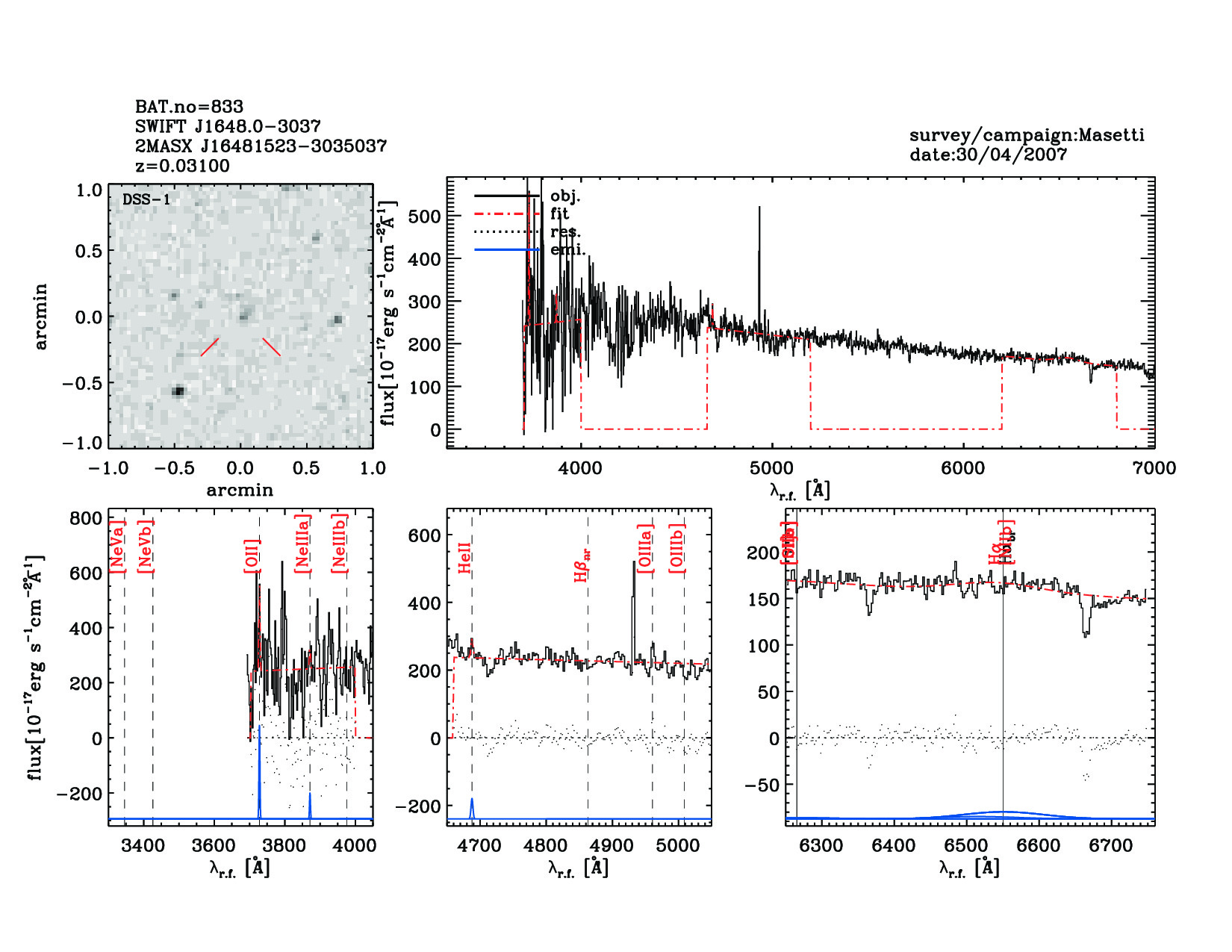 | 833 | SWIFT J1648.0-3037 | 2MASX J16481523-3035037 | 252.0635 | -30.5845 | 0.03100 | 11.90 | 45.70 | 12.30 | 44.20 | 21.40[20.90-21.69] | 1.68(0.29,0.18) | optical | NED |
