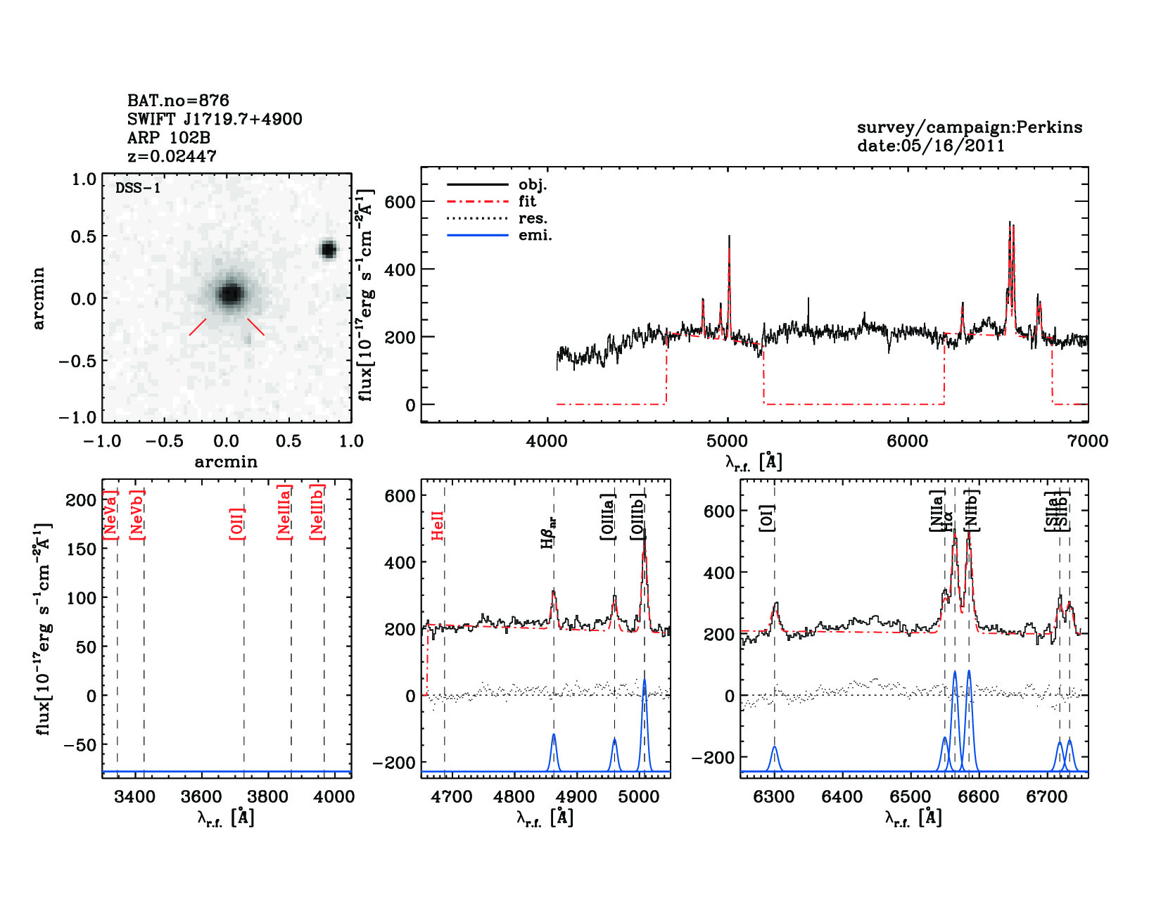 | 876 | SWIFT J1719.7+4900 | ARP 102B | 259.8104 | 48.9804 | 0.02447 | 4.90 | 18.20 | 5.00 | 17.30 | 21.32[21.15-21.45] | 1.41(0.08,0.08) | optical | NIR | NED |