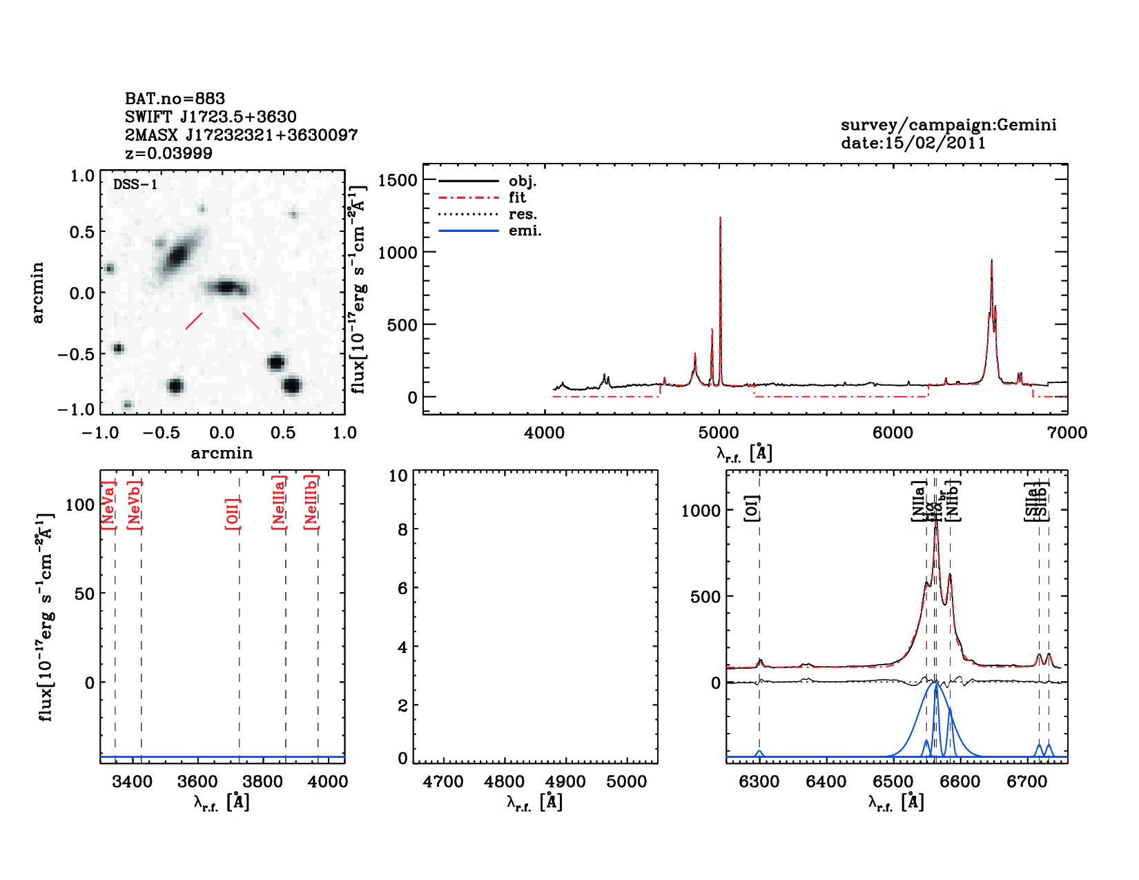 | 883 | SWIFT J1723.5+3630 | 2MASX J17232321+3630097 | 260.8467 | 36.5028 | 0.03999 | 8.40 | 20.10 | 7.60 | 17.30 | 21.64[21.50-21.76] | 1.74(0.11,0.14) | optical | NIR | NED |