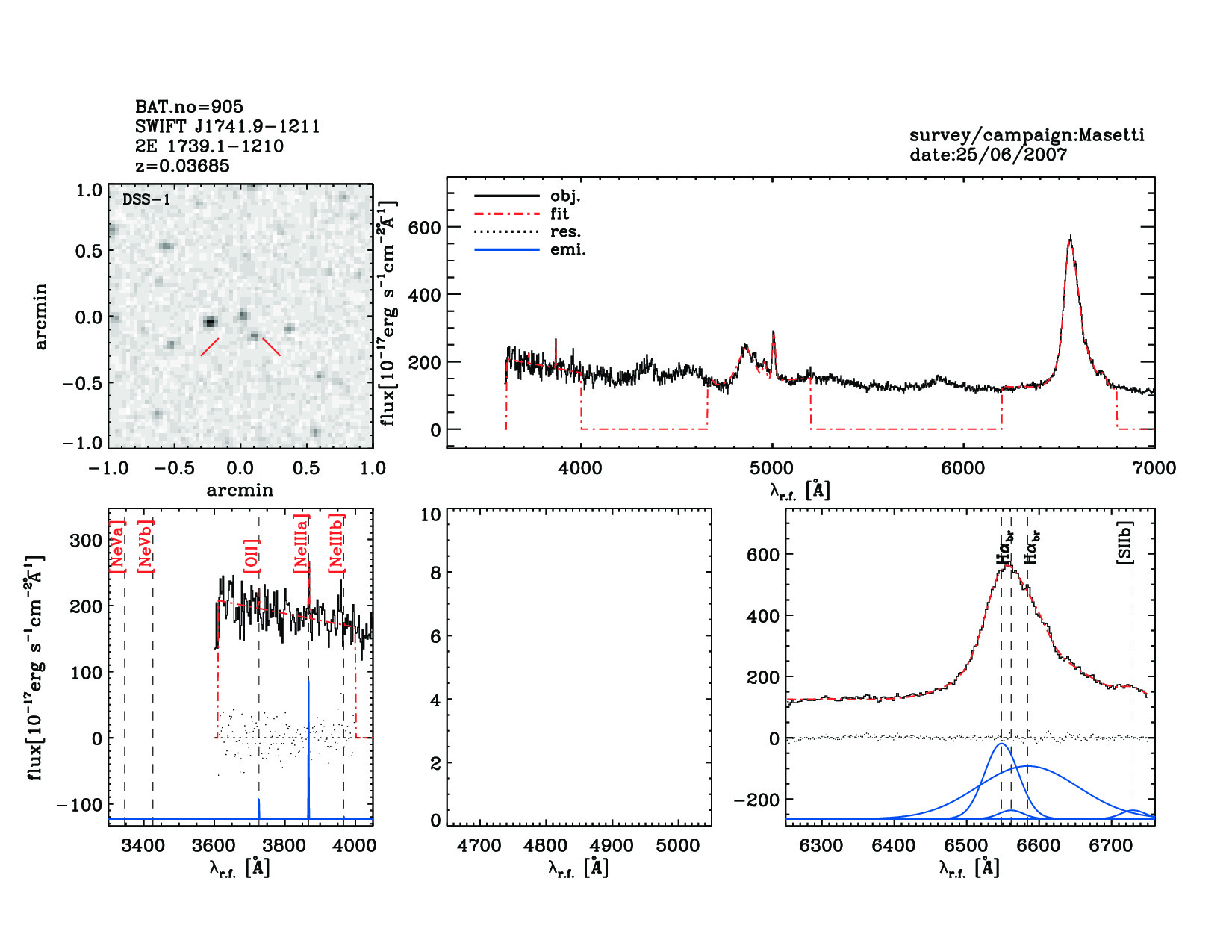 | 905 | SWIFT J1741.9-1211 | 2E 1739.1-1210 | 265.4802083 | -12.1990833 | 0.03685 | 12.30 | 44.50 | 33.30 | 45.90 | 21.40[21.32-21.48] | 2.09(0.06,0.05) | optical | NED |