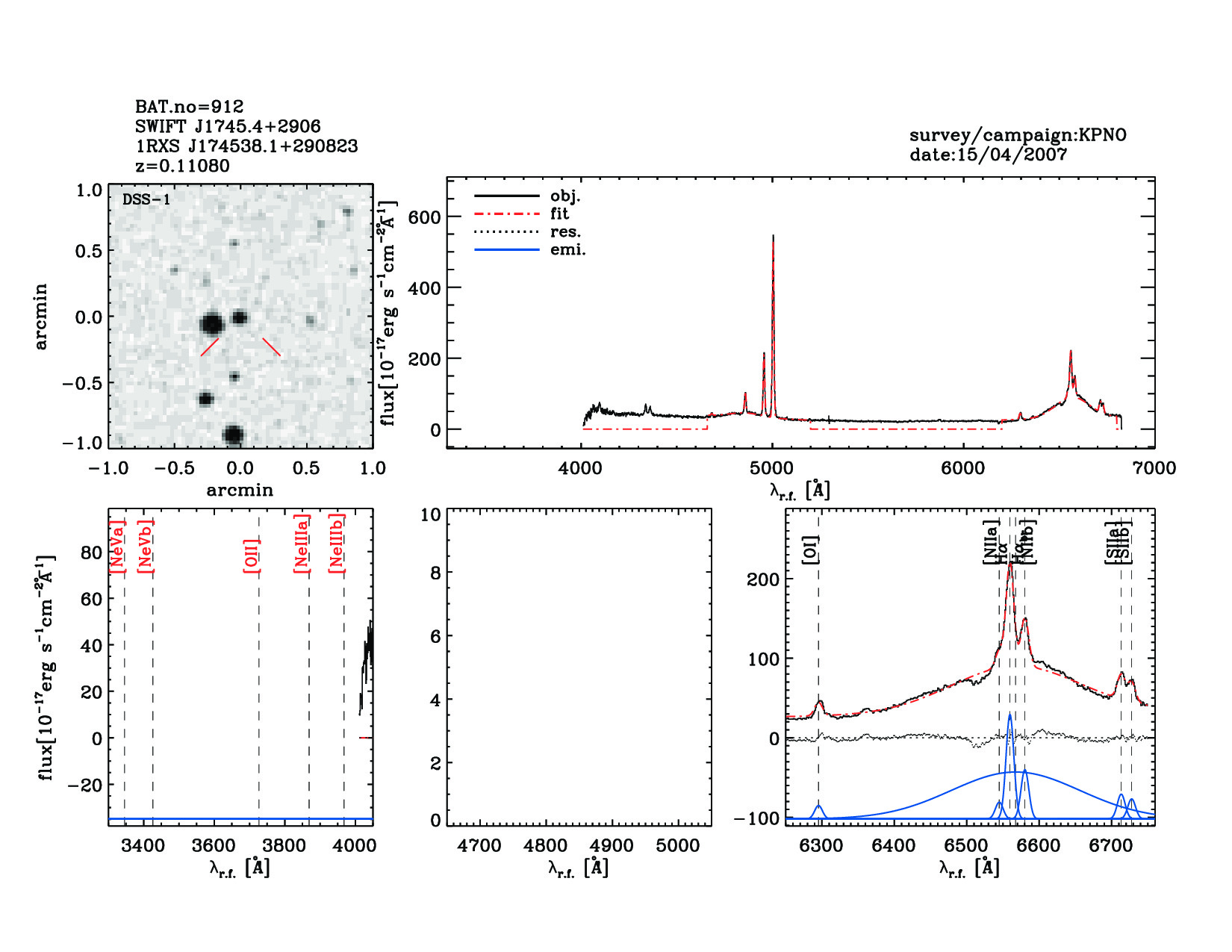 | 912 | SWIFT J1745.4+2906 | 1RXS J174538.1+290823 | 266.409 | 29.14 | 0.11080 | 7.20 | 21.10 | 7.30 | 20.90 | 20.00[20.00-20.00] | 1.73(0.09,0.09) | optical | NED |
