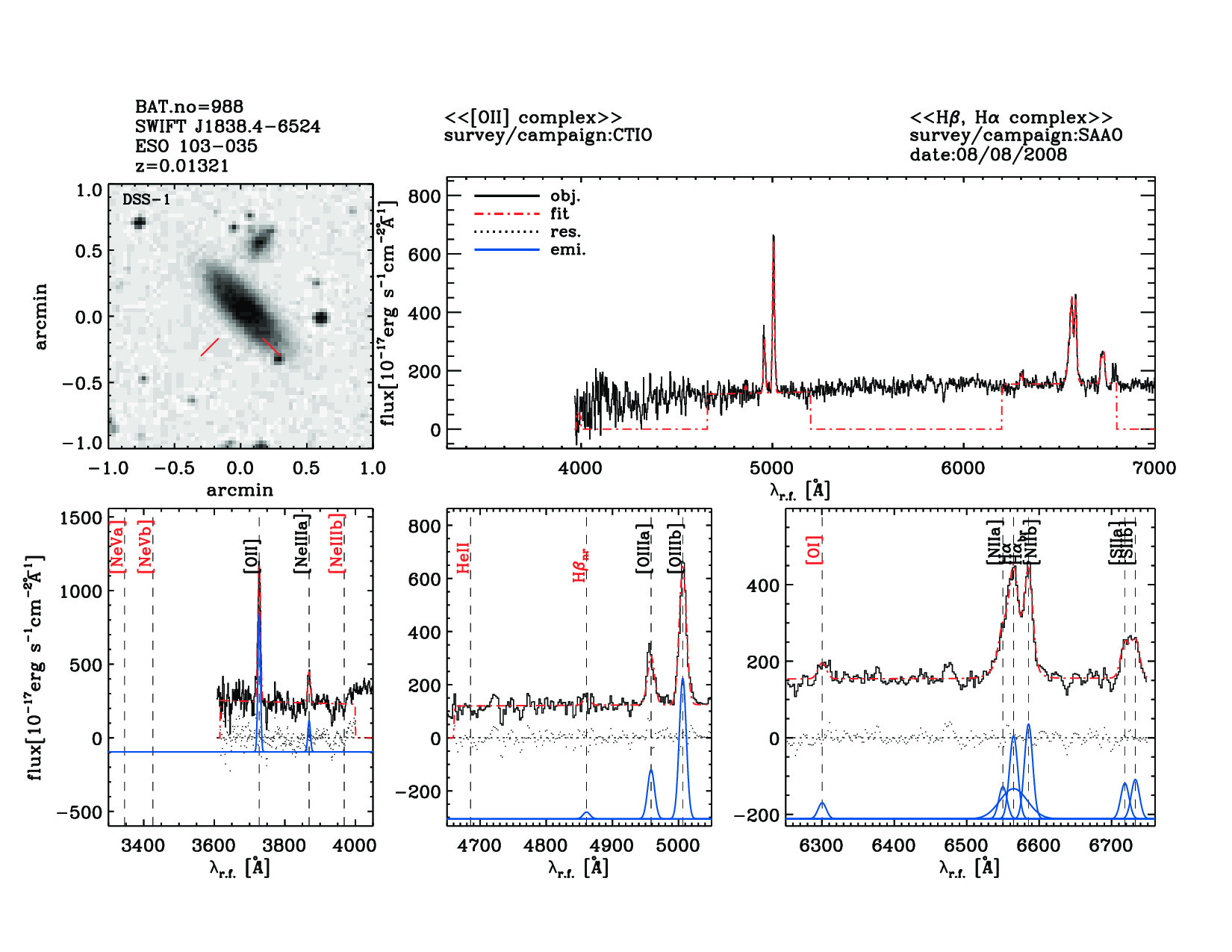 | 988 | SWIFT J1838.4-6524 | ESO 103-035 | 279.5848 | -65.4276 | 0.01321 | 22.30 | 111.70 | 60.50 | 121.00 | 23.28[23.26-23.30] | 1.65(0.09,0.10) | optical | NED |