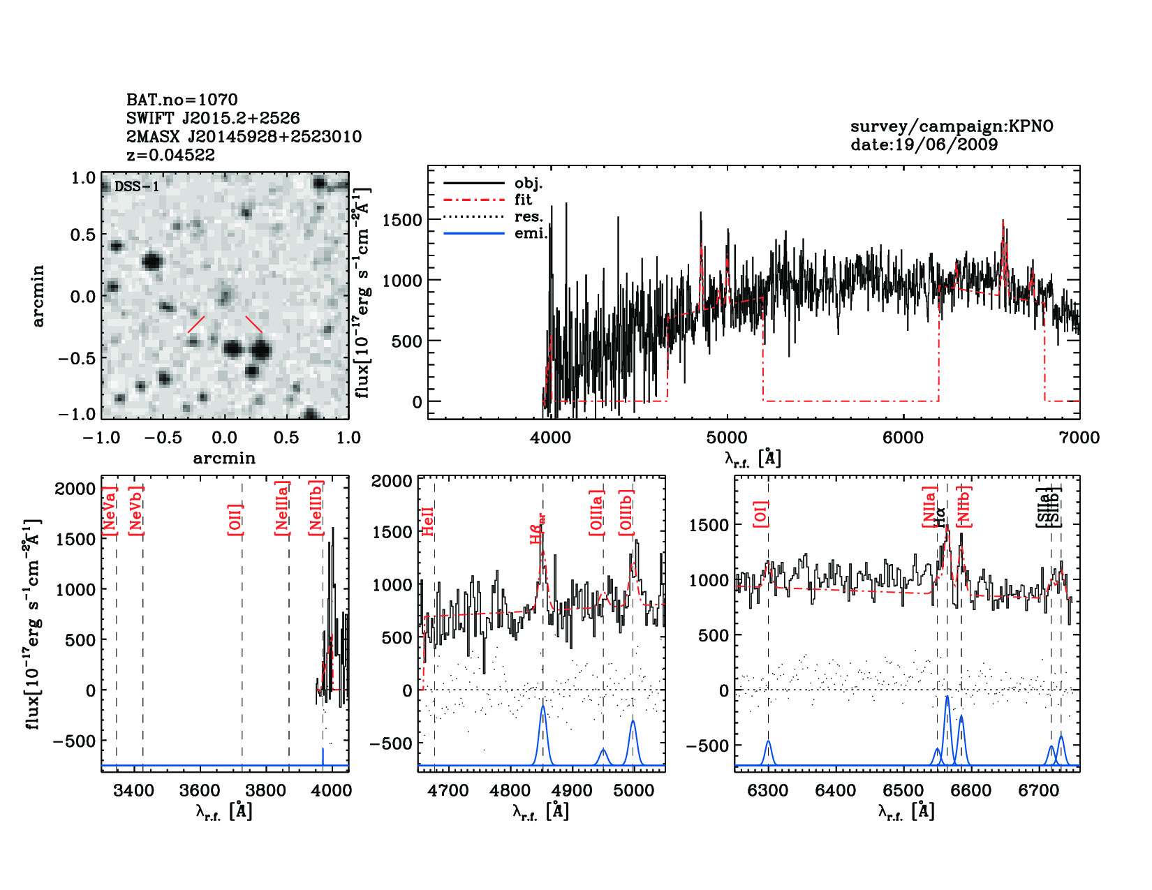 | 1070 | SWIFT J2015.2+2526 | 2MASX J20145928+2523010 | 303.747 | 25.3836 | 0.04522 | 0.40 | 15.50 | 78.60 | 73.60 | 24.42[24.25-24.62] | 2.30(0.25,0.29) | optical | NED |