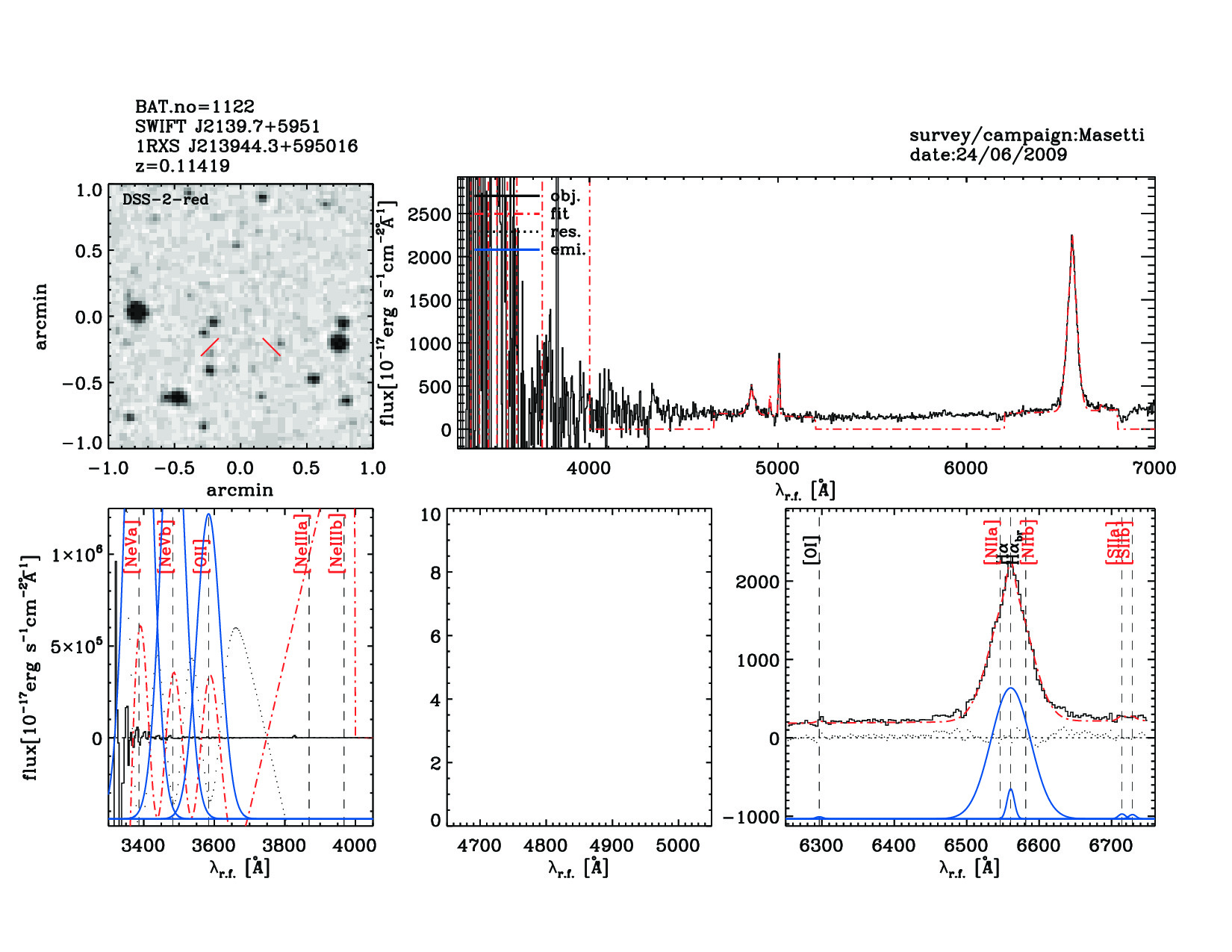 | 1122 | SWIFT J2139.7+5951 | 1RXS J213944.3+595016 | 324.9373958 | 59.8375139 | 0.11419 | 7.00 | 10.50 | 7.50 | 11.20 | 21.46[20.53-21.93] | 1.74(1.34,0.29) | optical | NED |