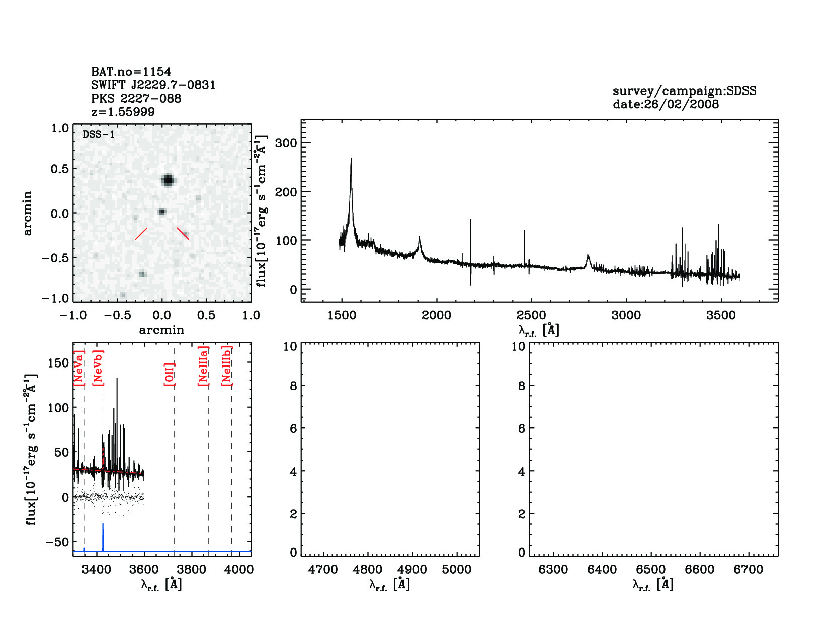 | 1154 | SWIFT J2229.7-0831 | PKS 2227-088 | 337.417 | -8.5485 | 1.55999 | 3.00 | 19.90 | 3.00 | 17.40 | 20.00[20.00-20.00] | 1.54(0.08,0.08) | optical | NED |