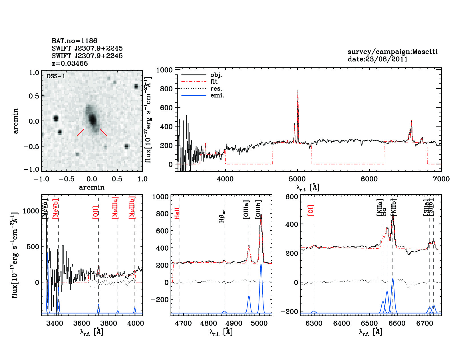 | 1186 | SWIFT J2307.9+2245 | SWIFT J2307.9+2245 | 346.9536 | 22.7103 | 0.03466 | 0.20 | 13.80 | 10.70 | 25.00 | 24.20[24.00-24.50] | 1.89(0.28,0.30) | optical | NED |