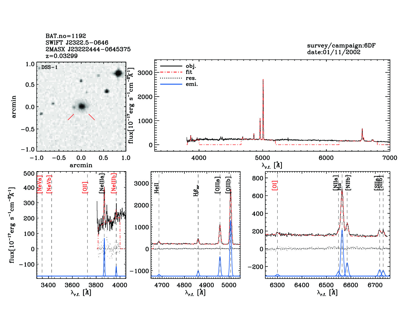 | 1192 | SWIFT J2322.5-0646 | 2MASX J23222444-0645375 | 350.6019 | -6.7605 | 0.03299 | 0.90 | 12.00 | 4.20 | 16.20 | 23.64[23.51-24.03] | 1.68(0.63,0.32) | optical | NED |