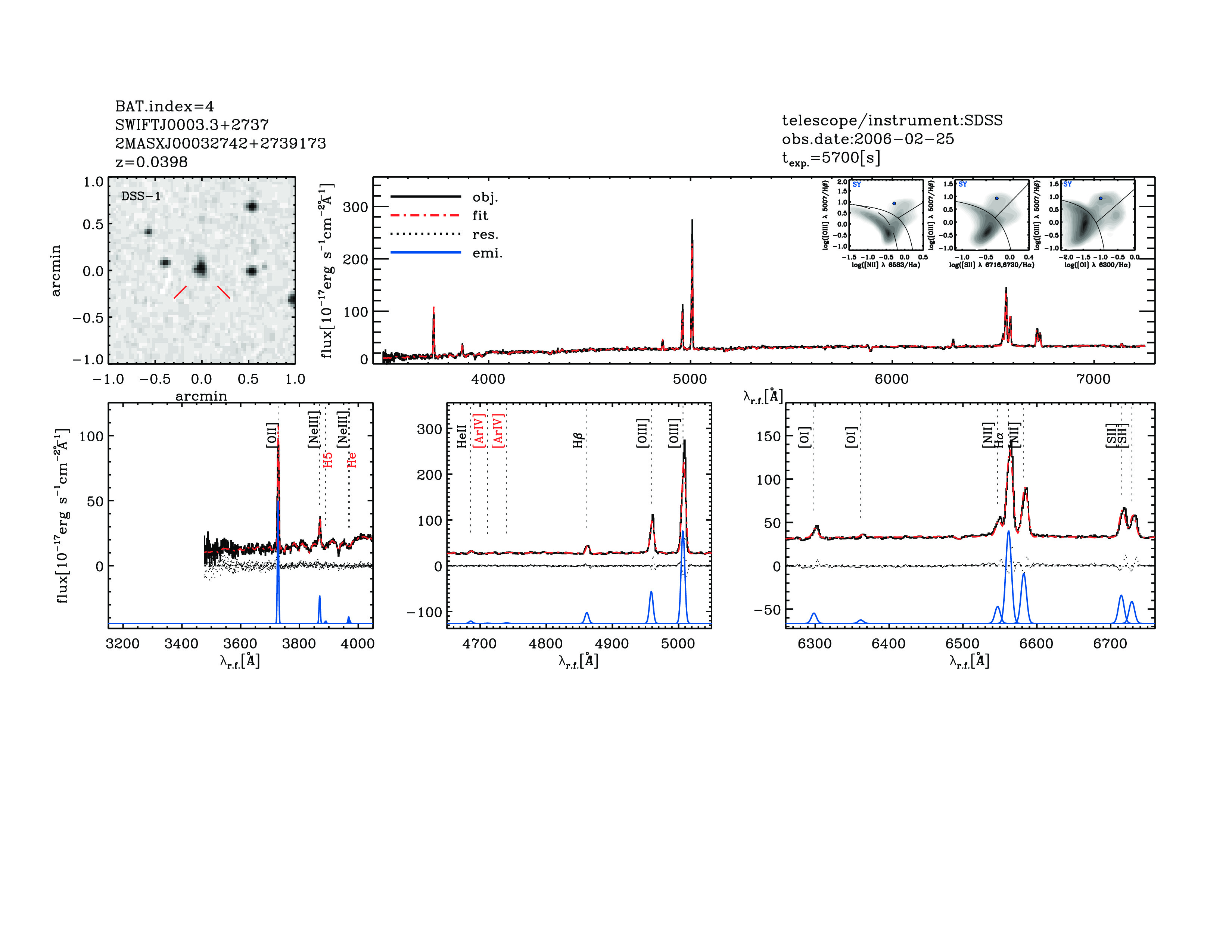 | 4 | SWIFTJ0003.3+2737 | 2MASXJ00032742+2739173 | 0.8642482 | 27.6547253 | 0.03979 | 1.7 | 3.1 | 13 | 11.2 | 22.86[22.98-22.78] | 1.76(0.28,0.4) | optical | NED |
