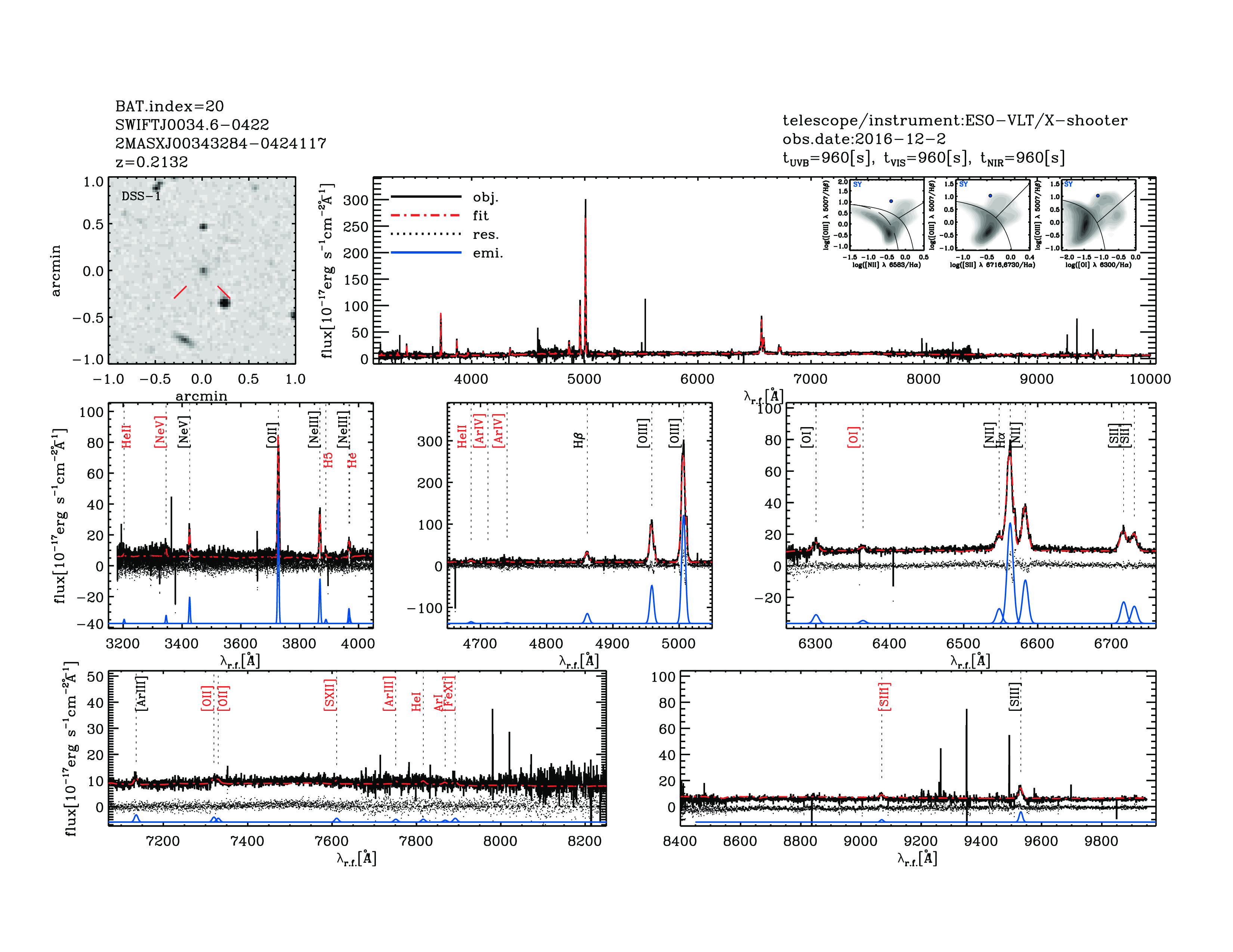 | 20 | SWIFTJ0034.6-0422 | 2MASXJ00343284-0424117 | 8.636619 | -4.4034229 | 0.21316 | 1.6 | 4 | 16.38 | 15.6 | 23.45[23.62-23.3] | 1.19(0.97,0.43) | optical | NED |