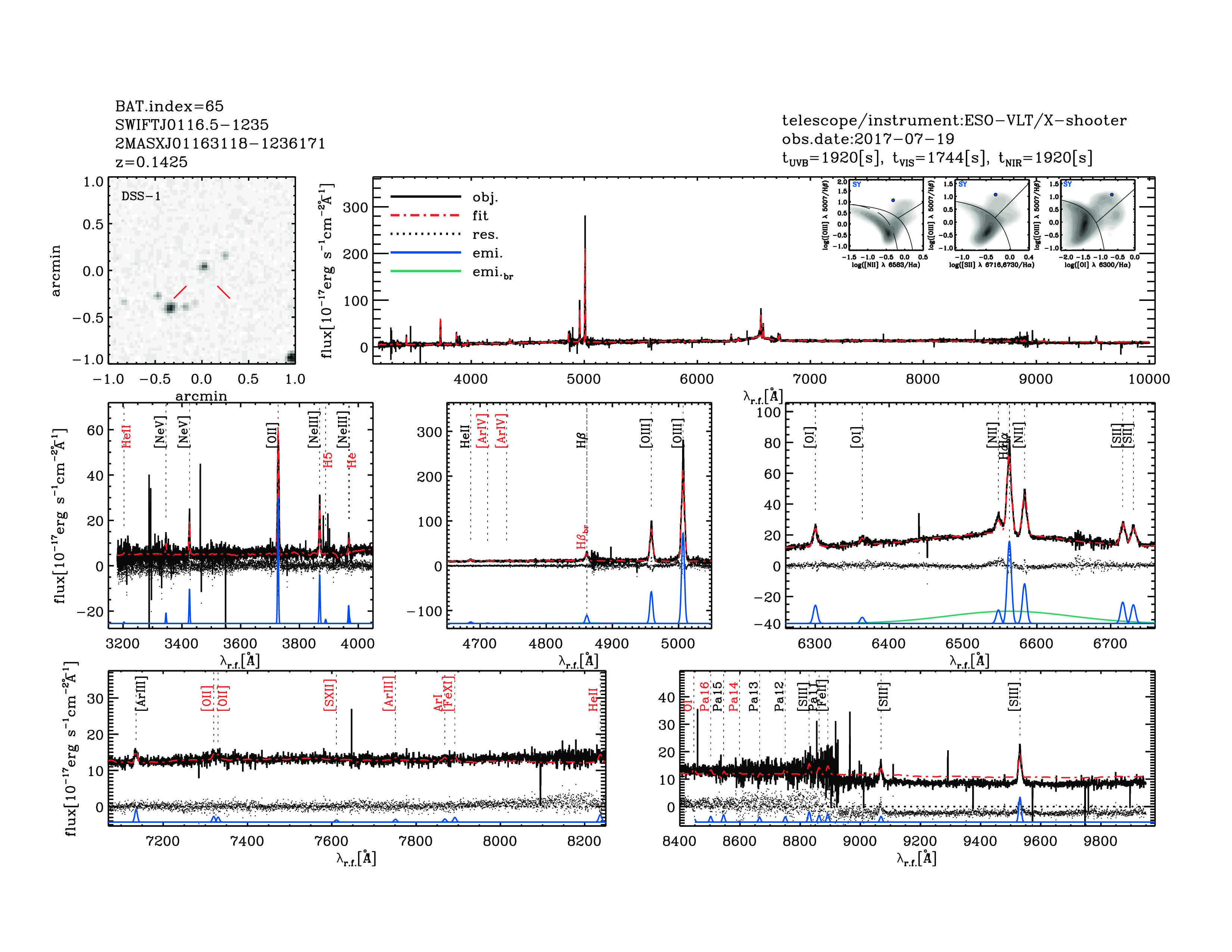 | 65 | SWIFTJ0116.5-1235 | 2MASXJ01163118-1236171 | 19.1297888 | -12.604714 | 0.14249 | 4.4 | 4.1 | 9.75 | 7.9 | 21.8[21.96-21.58] | 1.65(0.34,0.22) | optical | NED |