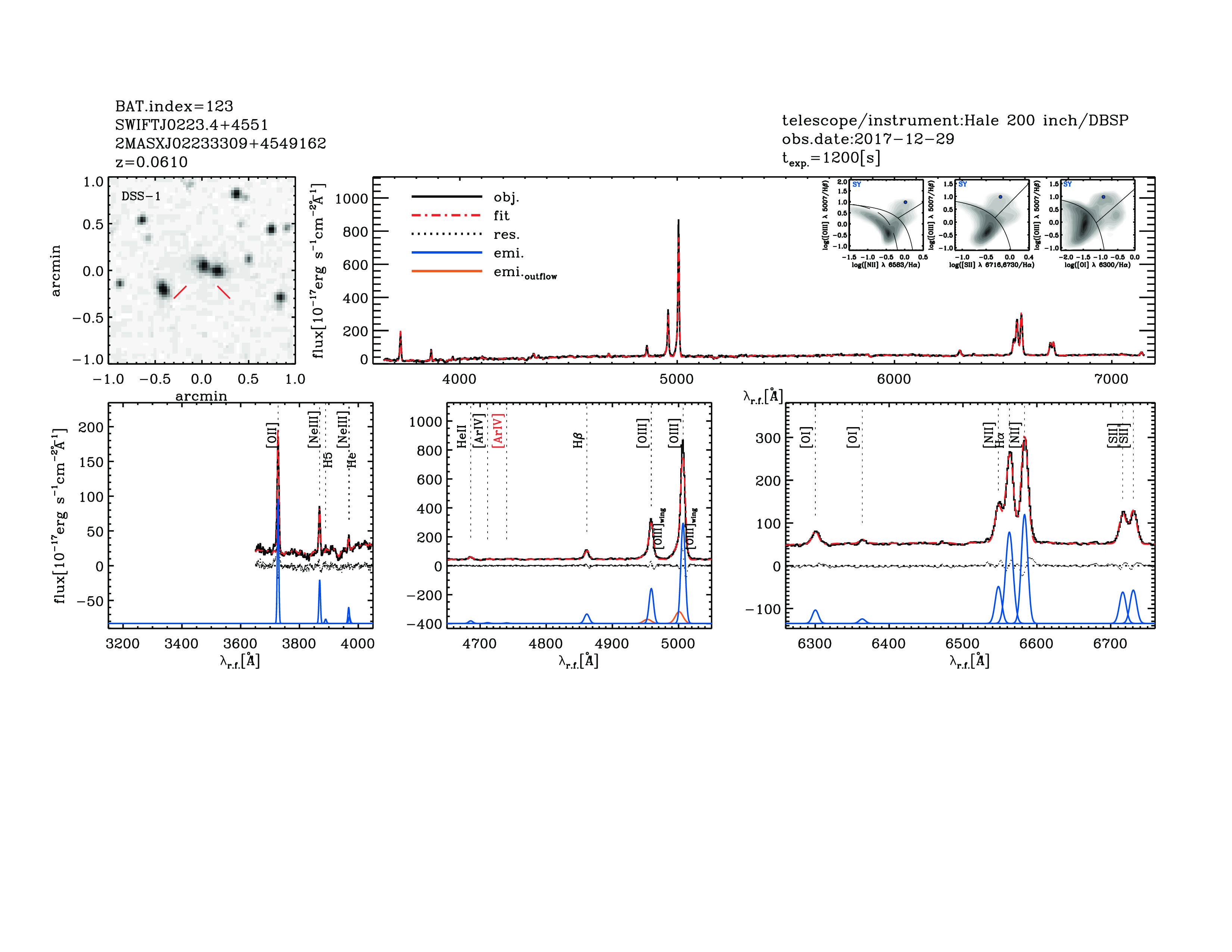 | 123 | SWIFTJ0223.4+4551 | 2MASXJ02233309+4549162 | 35.8878154 | 45.8211765 | 0.06100 | 3 | 5.2 | 14.7 | 13.7 | 22.97[23.08-22.71] | 1.67(0.1,0.51) | optical | NED |
