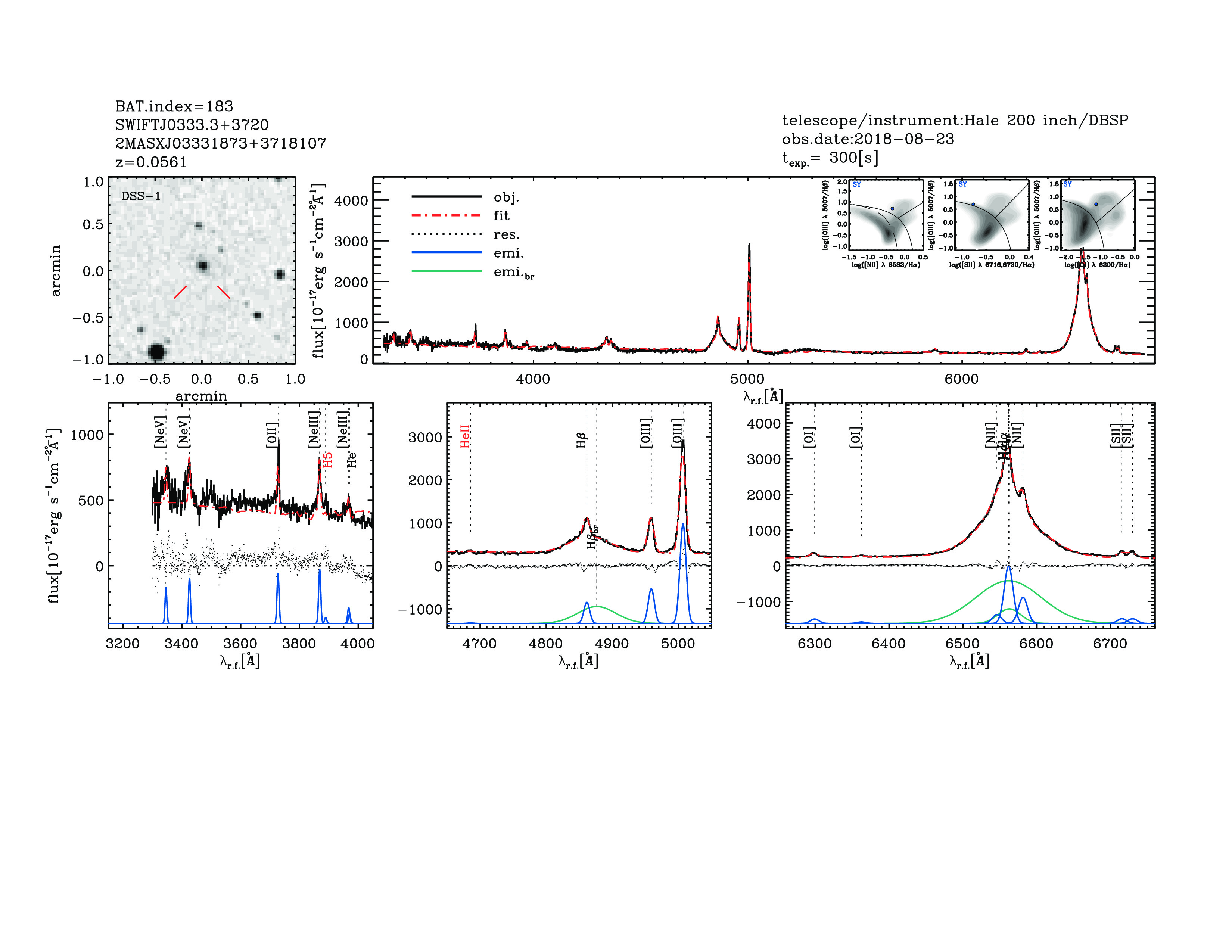 | 183 | SWIFTJ0333.3+3720 | 2MASXJ03331873+3718107 | 53.3282645 | 37.3030964 | 0.05614 | 8.2 | 8.5 | 24.35 | 20.9 | 21.36[21.52-21.16] | 1.7(0.26,0.11) | optical | NED |