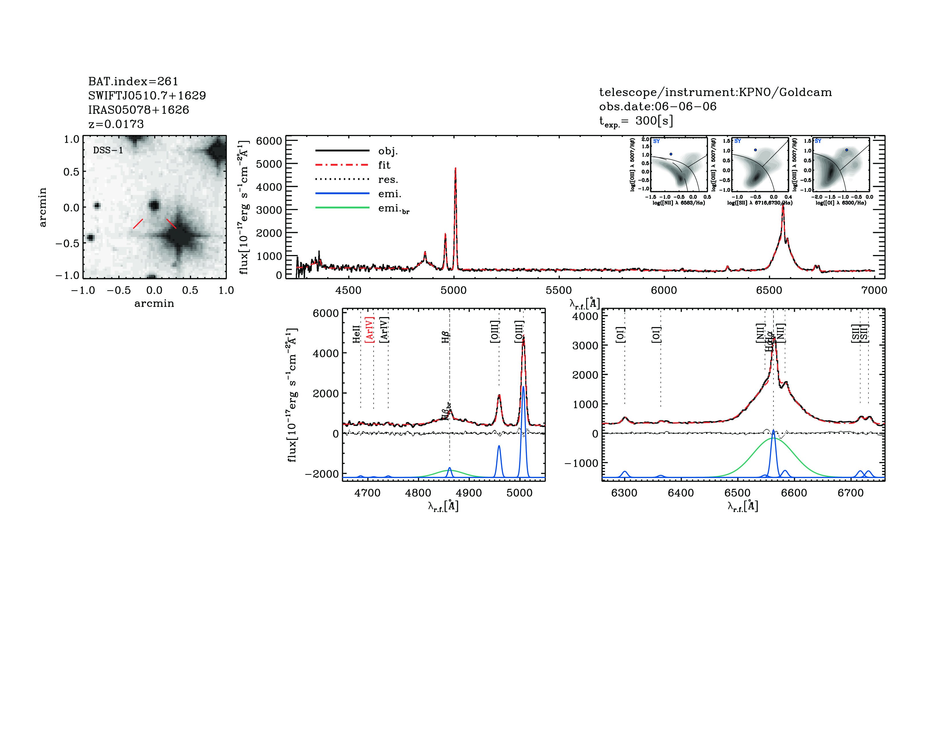 | 261 | SWIFTJ0510.7+1629 | IRAS05078+1626 | 77.6897199 | 16.4994853 | 0.01730 | 24 | 46.1 | 90.61 | 80.8 | 21.08[21.15-20.98] | 1.77(0.04,0.02) | optical | NED |