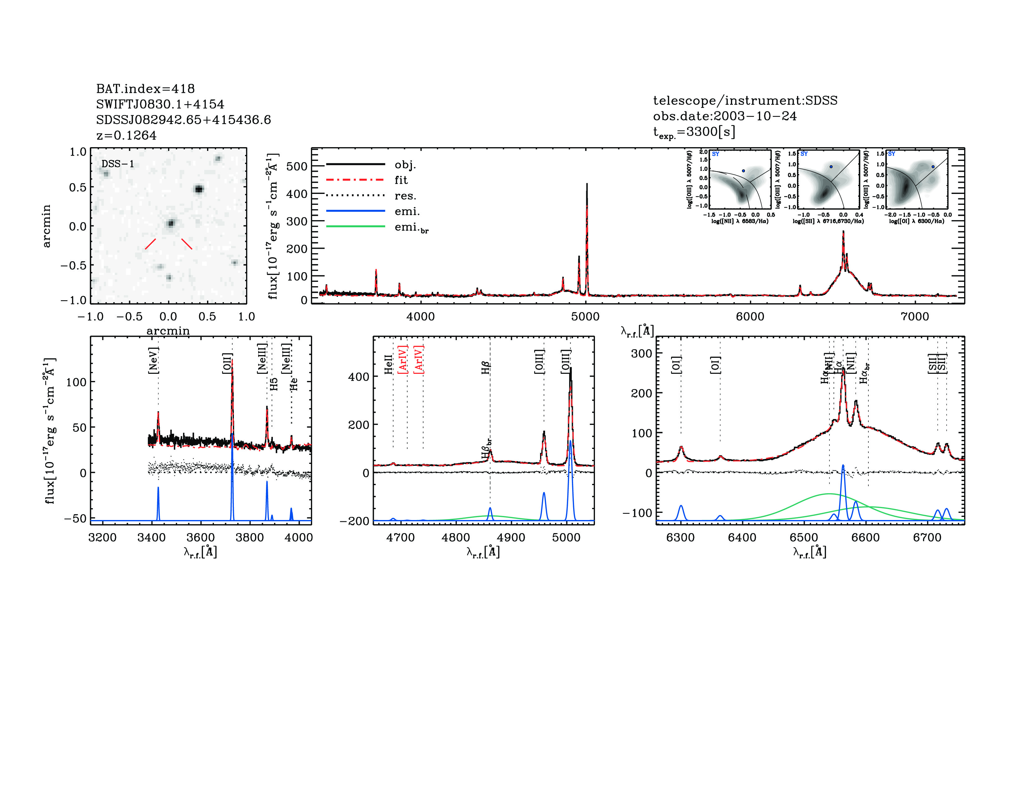 | 418 | SWIFTJ0830.1+4154 | SDSSJ082942.65+415436.6 | 127.427808 | 41.9102402 | 0.12641 | 6.7 | 7.5 | 13.03 | 10.9 | 21.11[21.24-21.04] | 1.8(0.27,0.25) | optical | NED |