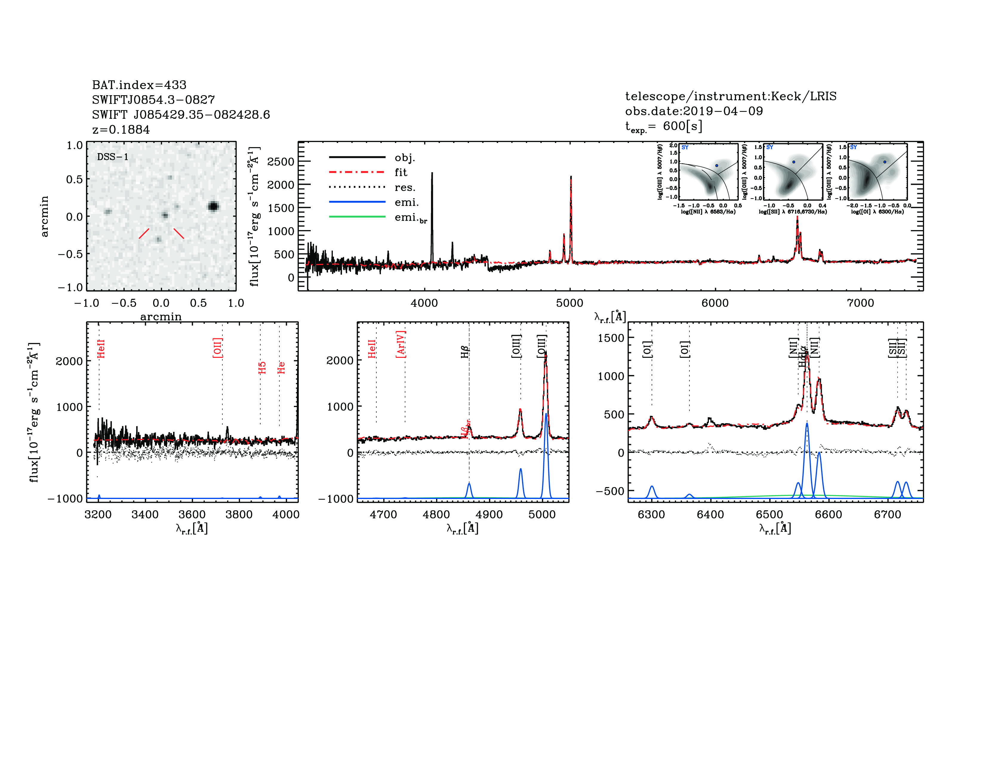 | 433 | SWIFTJ0854.3-0827 | SWIFT J085429.35-082428.6 | 133.621953 | -8.4076316 | 0.18842 | 1.36 | 1.49 | 6.07 | 6.13 | 22.39[22.27-22.63] | (,) | optical | NED |