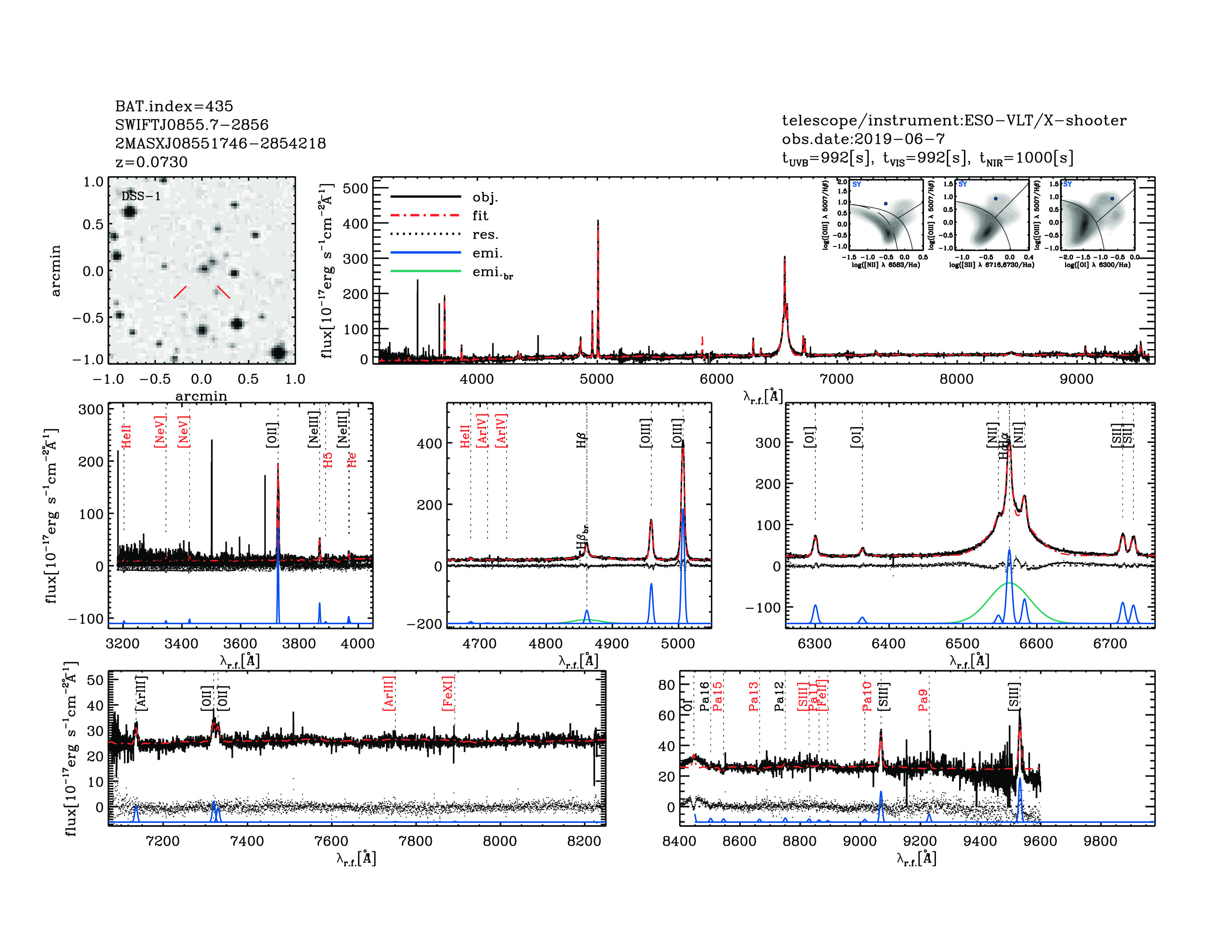 | 435 | SWIFTJ0855.7-2856 | 2MASXJ08551746-2854218 | 133.822757 | -28.905933 | 0.07303 | 4.7 | 5 | 8.53 | 6.9 | 21.95[22.04-21.88] | 1.85(0.48,0.37) | optical | NED |
