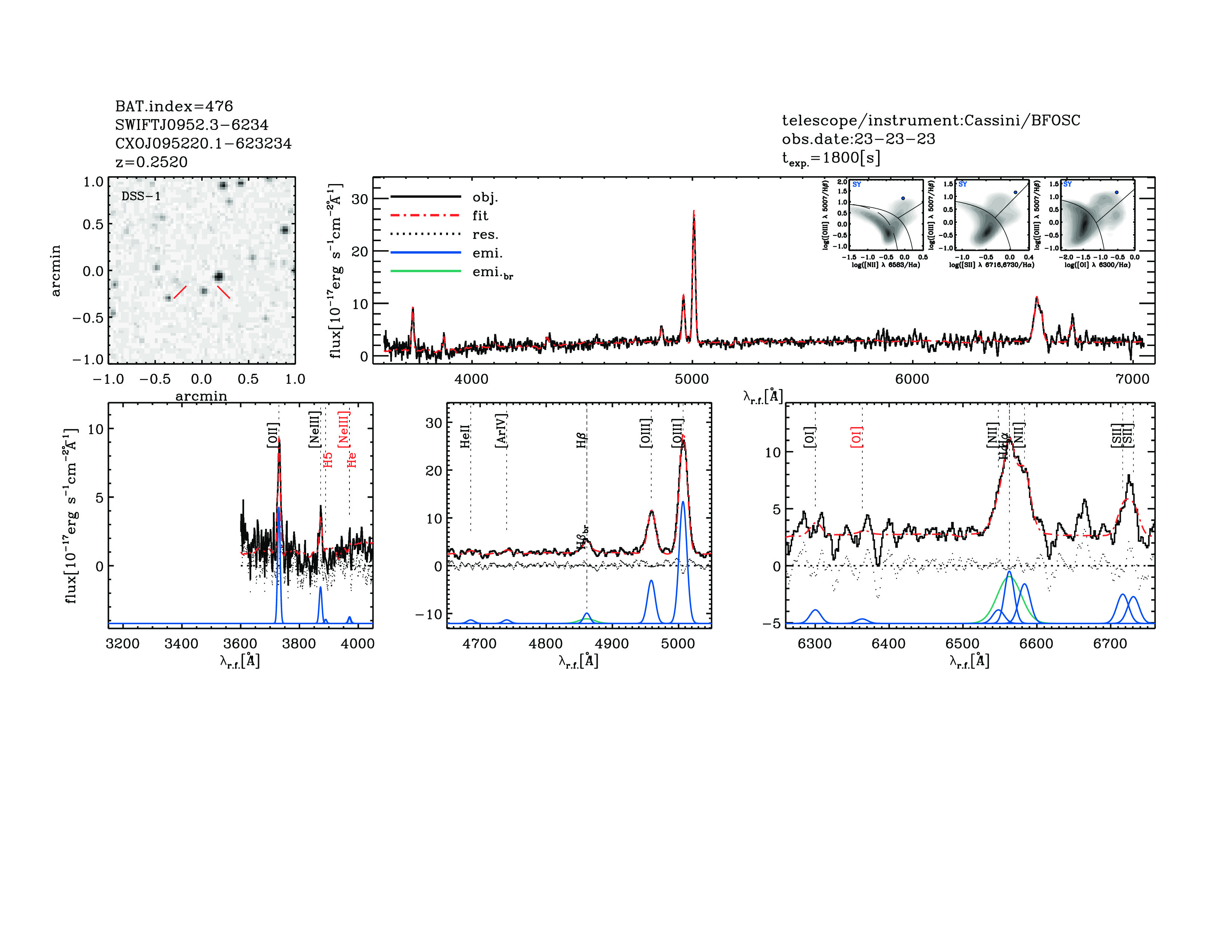 | 476 | SWIFTJ0952.3-6234 | CXOJ095220.1-623234 | 148.085244 | -62.543231 | 0.25200 | 3.7 | 6.1 | 15.92 | 14.6 | 23.07[23.11-23.03] | 1.66(0.17,0.14) | optical | NED |
