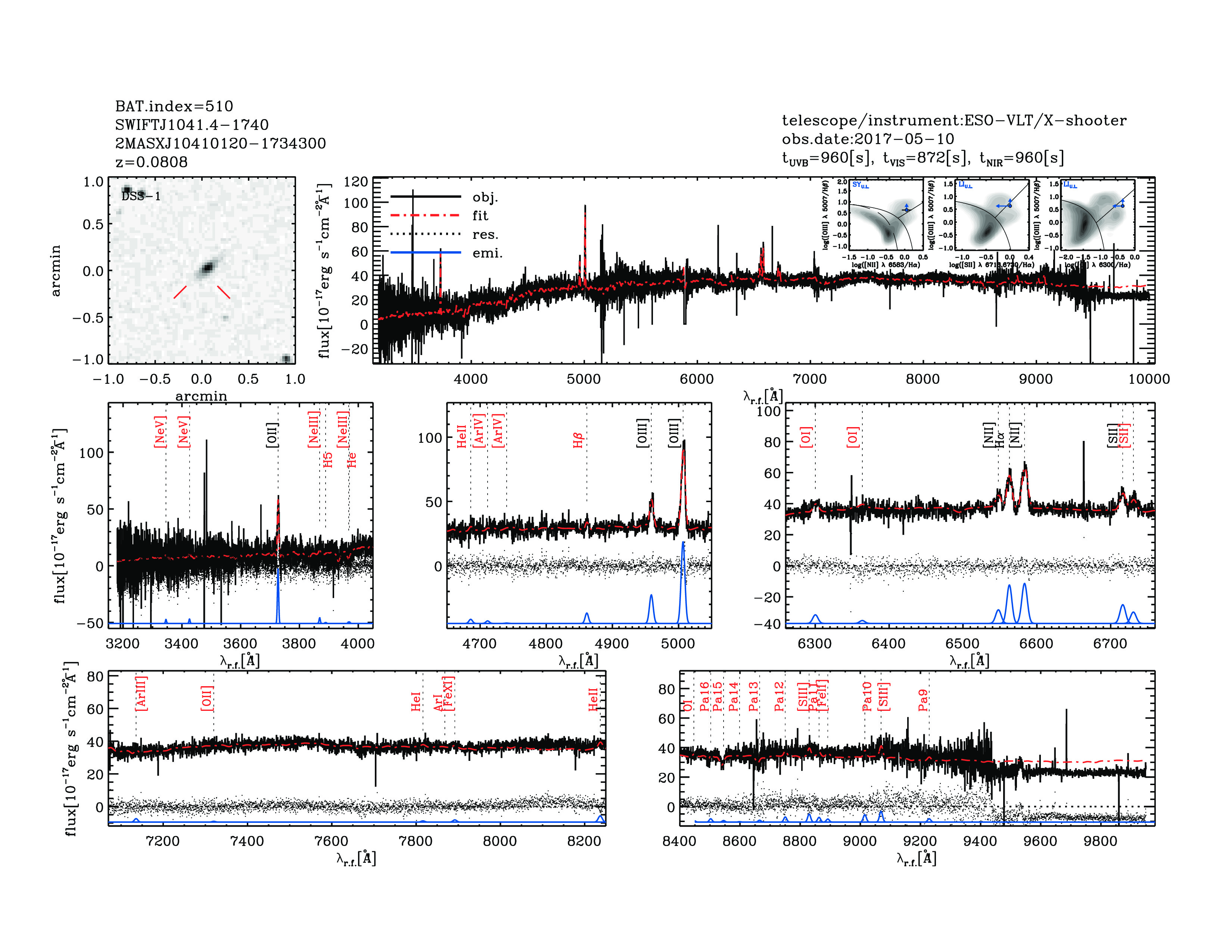 | 510 | SWIFTJ1041.4-1740 | 2MASXJ10410120-1734300 | 160.255177 | -17.574904 | 0.08076 | 0.5 | 1.3 | 9.78 | 9.7 | 23.23[23.48-22.97] | 1.92(0.71,0.8) | optical | NED |