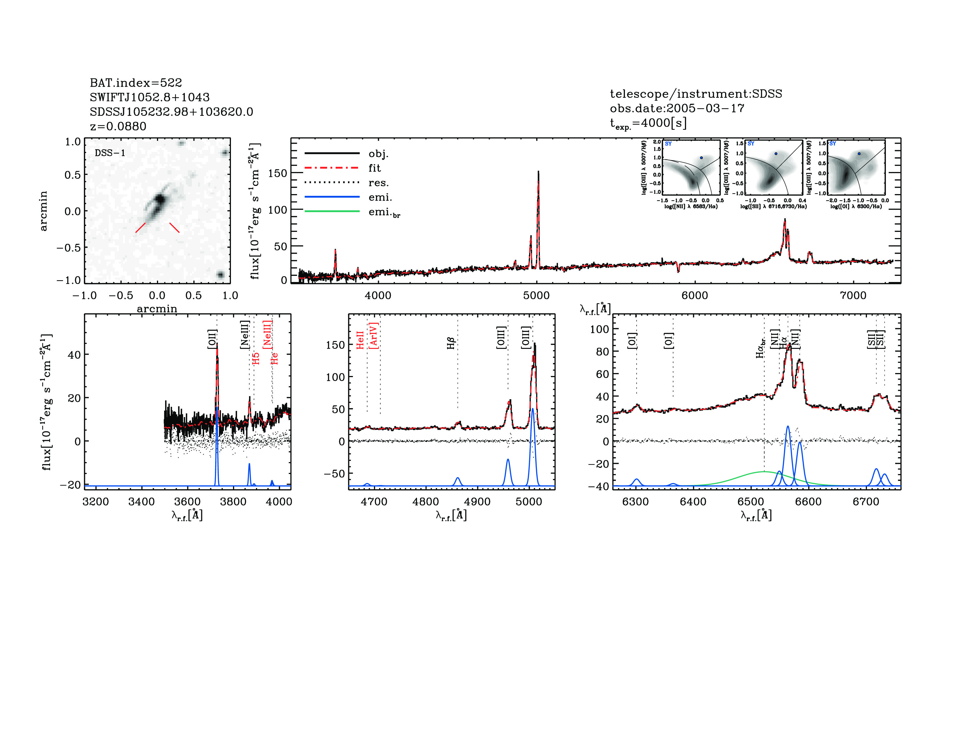 | 522 | SWIFTJ1052.8+1043 | SDSSJ105232.98+103620.0 | 163.137378 | 10.6055292 | 0.08800 | 1.6 | 3 | 16.49 | 13.7 | 23.2[23.26-23.14] | 1.22(0.43,0.16) | optical | NED |