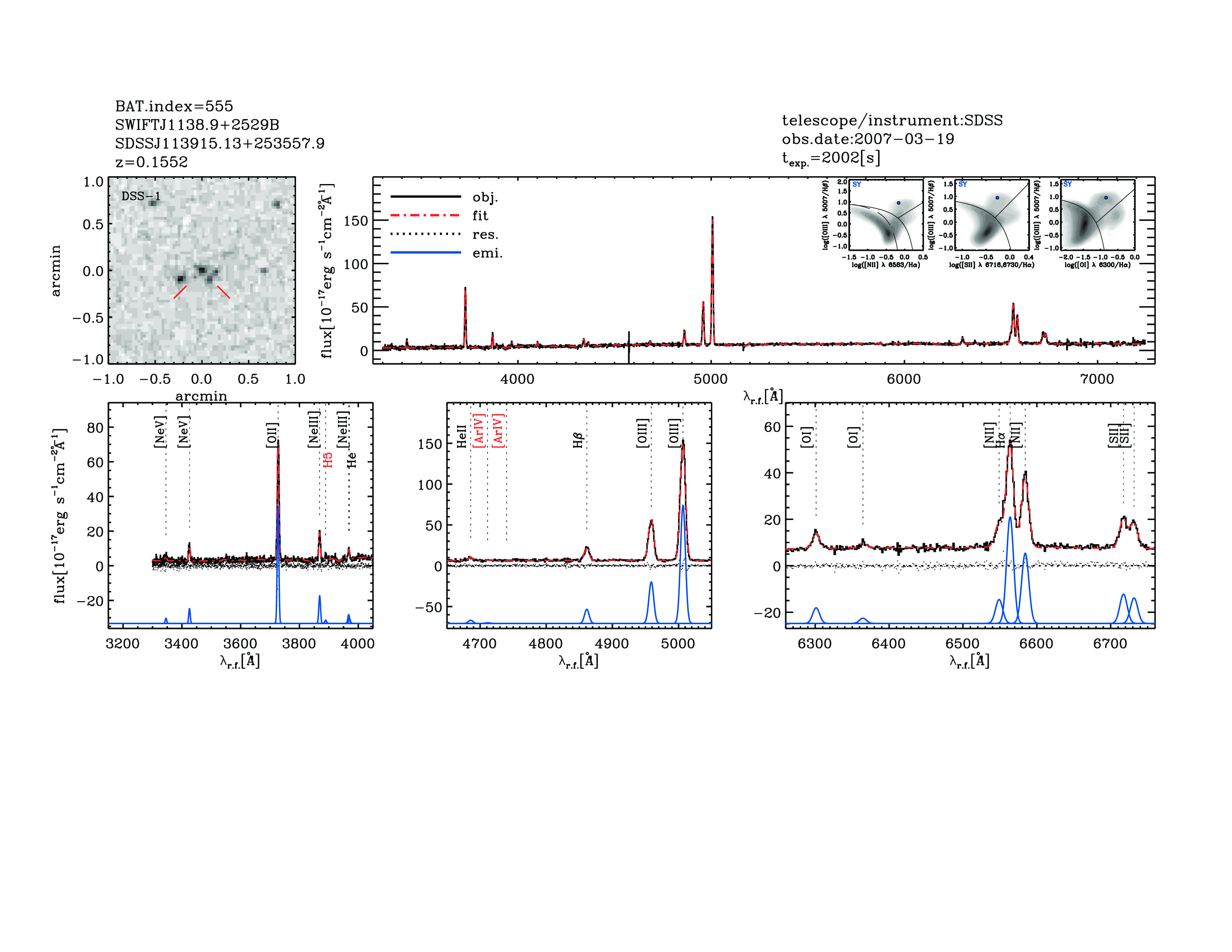 | 555 | SWIFTJ1138.9+2529B | SDSSJ113915.13+253557.9 | 174.813041 | 25.5993964 | 0.15516 | 2.2 | 3.3 | 5.63 | 5.1 | 23.06[23.18-22.9] | 1.56(0.33,0.72) | optical | NED |