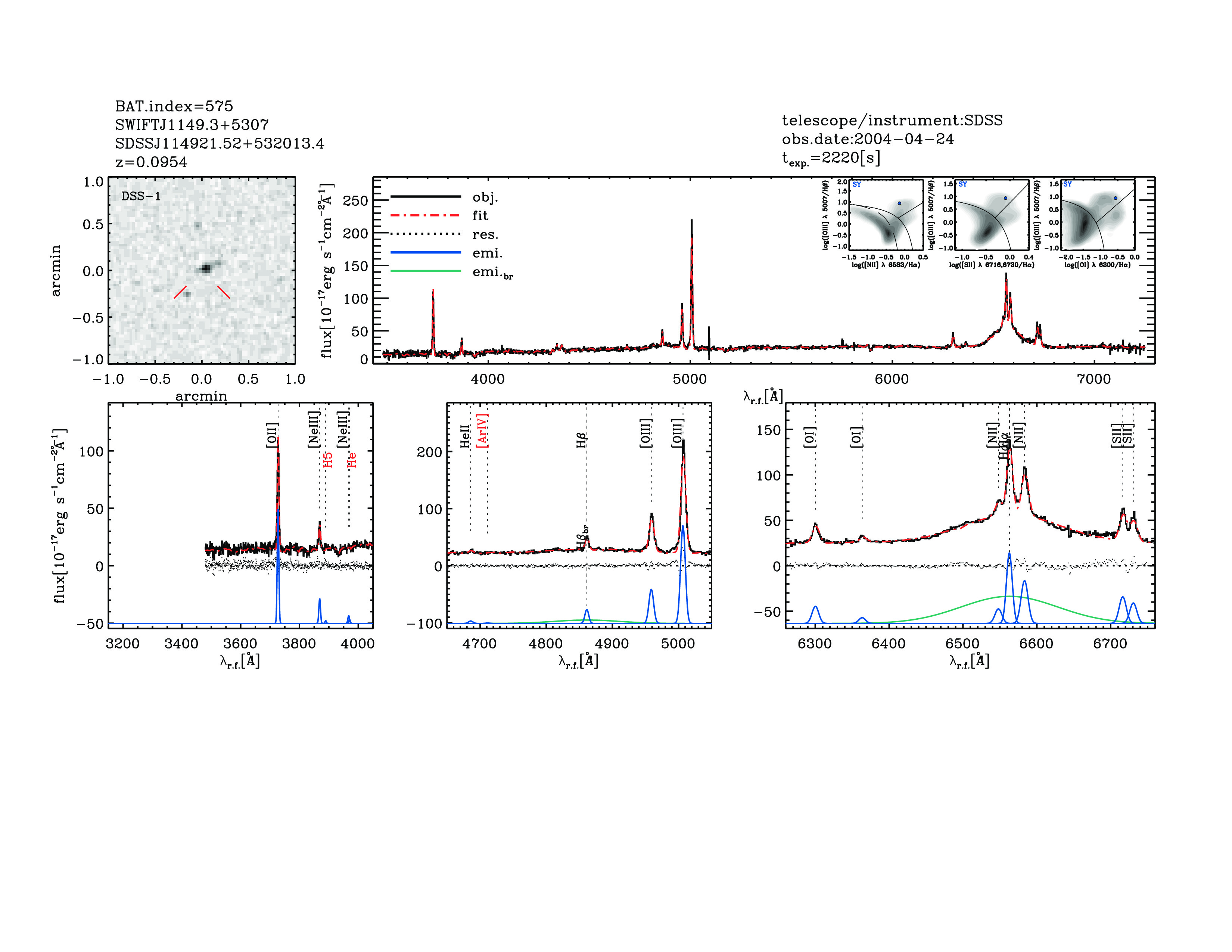 | 575 | SWIFTJ1149.3+5307 | SDSSJ114921.52+532013.4 | 177.339656 | 53.3370322 | 0.09541 | 3.3 | 3.3 | 5.98 | 5.2 | 20.99[21.15-20.77] | 1.67(0.21,0.19) | optical | NED |