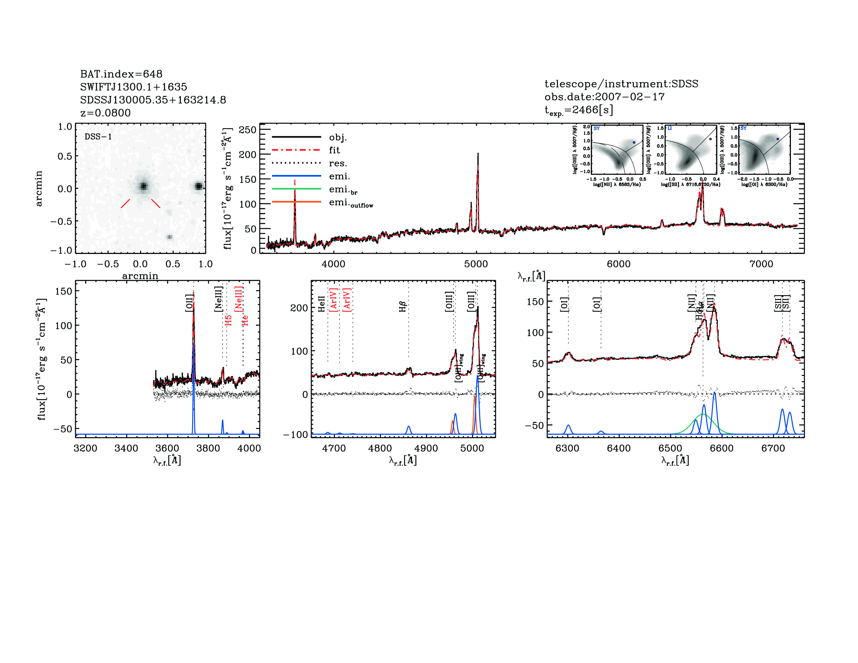 | 648 | SWIFTJ1300.1+1635 | SDSSJ130005.35+163214.8 | 195.022285 | 16.5374535 | 0.08000 | 2.1 | 2.2 | 14.36 | 11.1 | 22.27[22.38-22.15] | 1.41(0.35,0.21) | optical | NED |