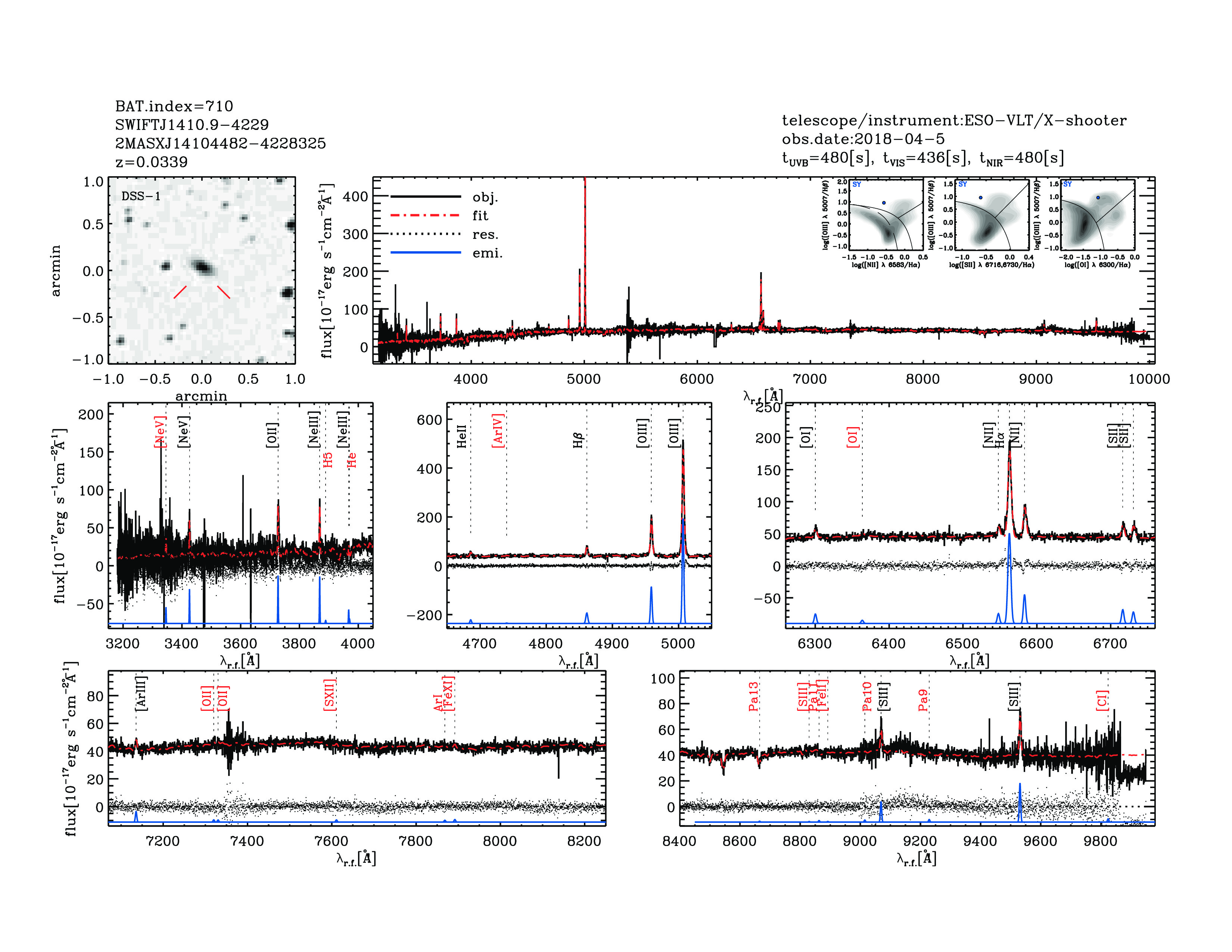 | 710 | SWIFTJ1410.9-4229 | 2MASXJ14104482-4228325 | 212.686707 | -42.475842 | 0.03392 | 3.1 | 4.3 | 12.09 | 9.8 | 22.78[22.93-22.63] | 2.5(0.51,0.26) | optical | NED |