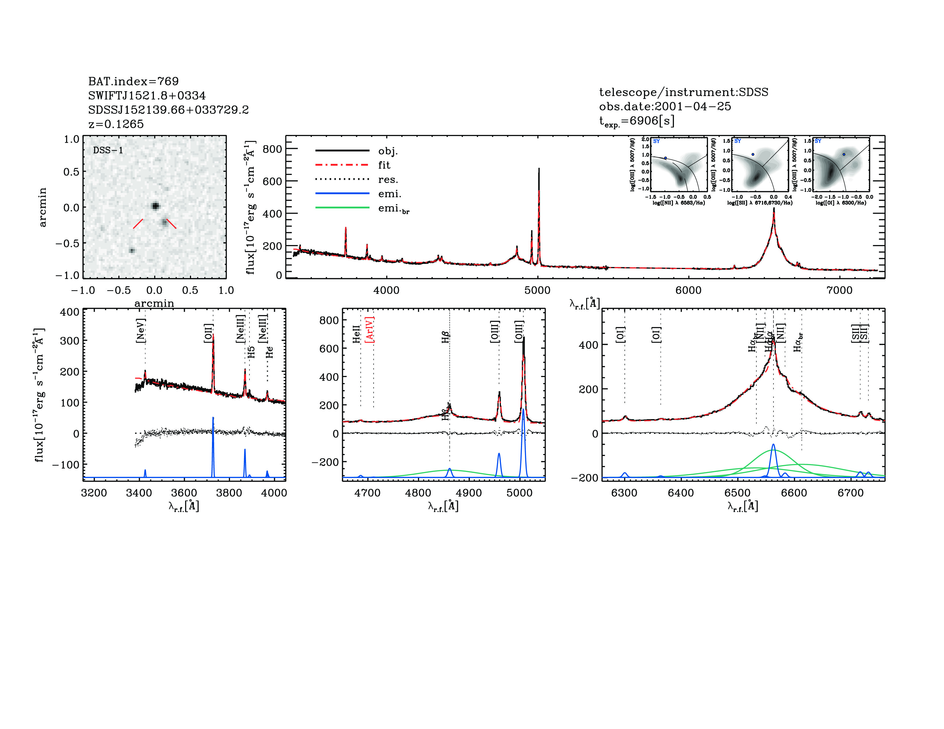 | 769 | SWIFTJ1521.8+0334 | SDSSJ152139.66+033729.2 | 230.415285 | 3.6247881 | 0.12654 | 2.7 | 2.7 | 15.38 | 12.7 | 20[20-20] | 1.74(0.28,0.13) | optical | NED |