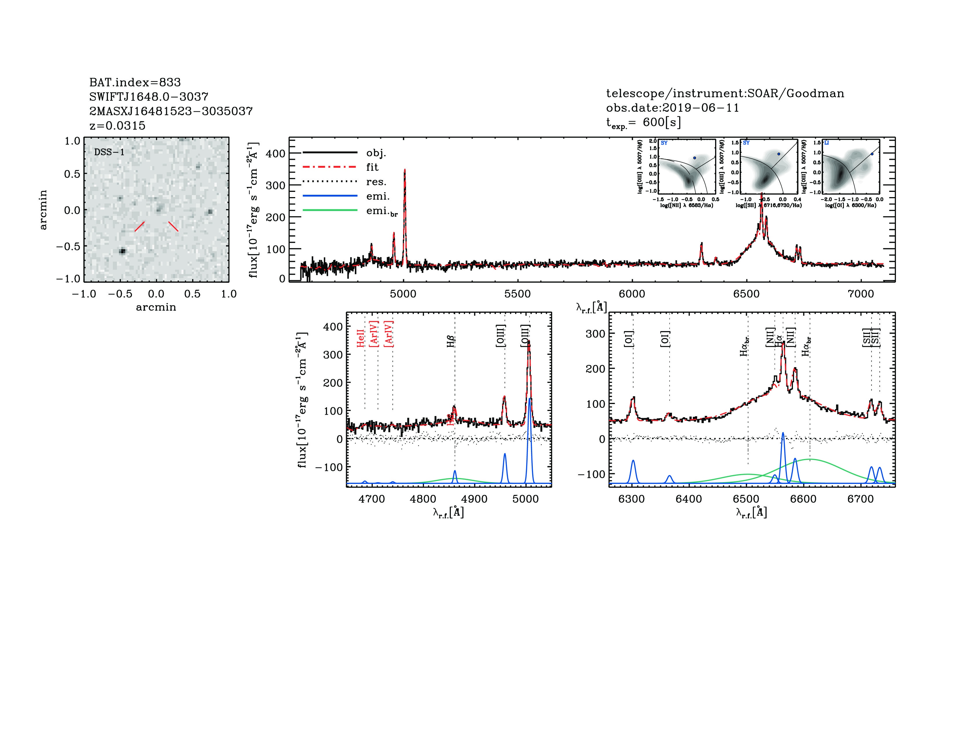 | 833 | SWIFTJ1648.0-3037 | 2MASXJ16481523-3035037 | 252.06354 | -30.584504 | 0.03150 | 11.9 | 12.3 | 45.69 | 38.7 | 21.4[21.69-20.9] | 1.68(0.29,0.18) | optical | NED |
