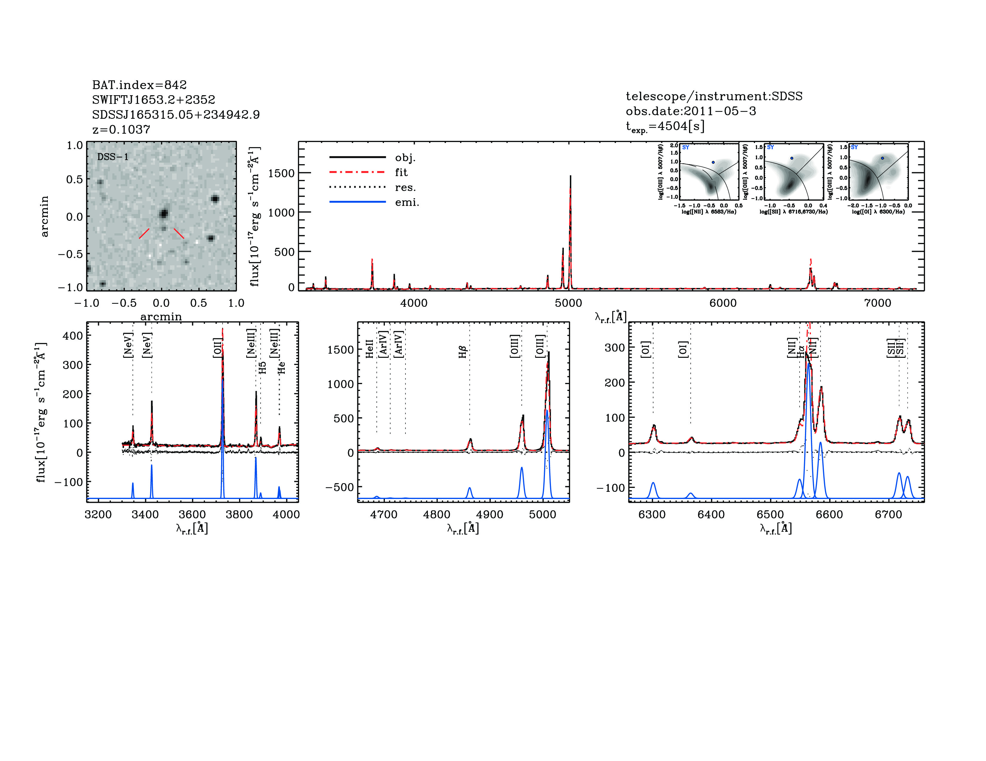 | 842 | SWIFTJ1653.2+2352 | SDSSJ165315.05+234942.9 | 253.312743 | 23.8285803 | 0.10362 | 2 | 4.3 | 11.35 | 10.5 | 23.27[23.33-23.18] | 1.79(0.16,0.25) | optical | NED |