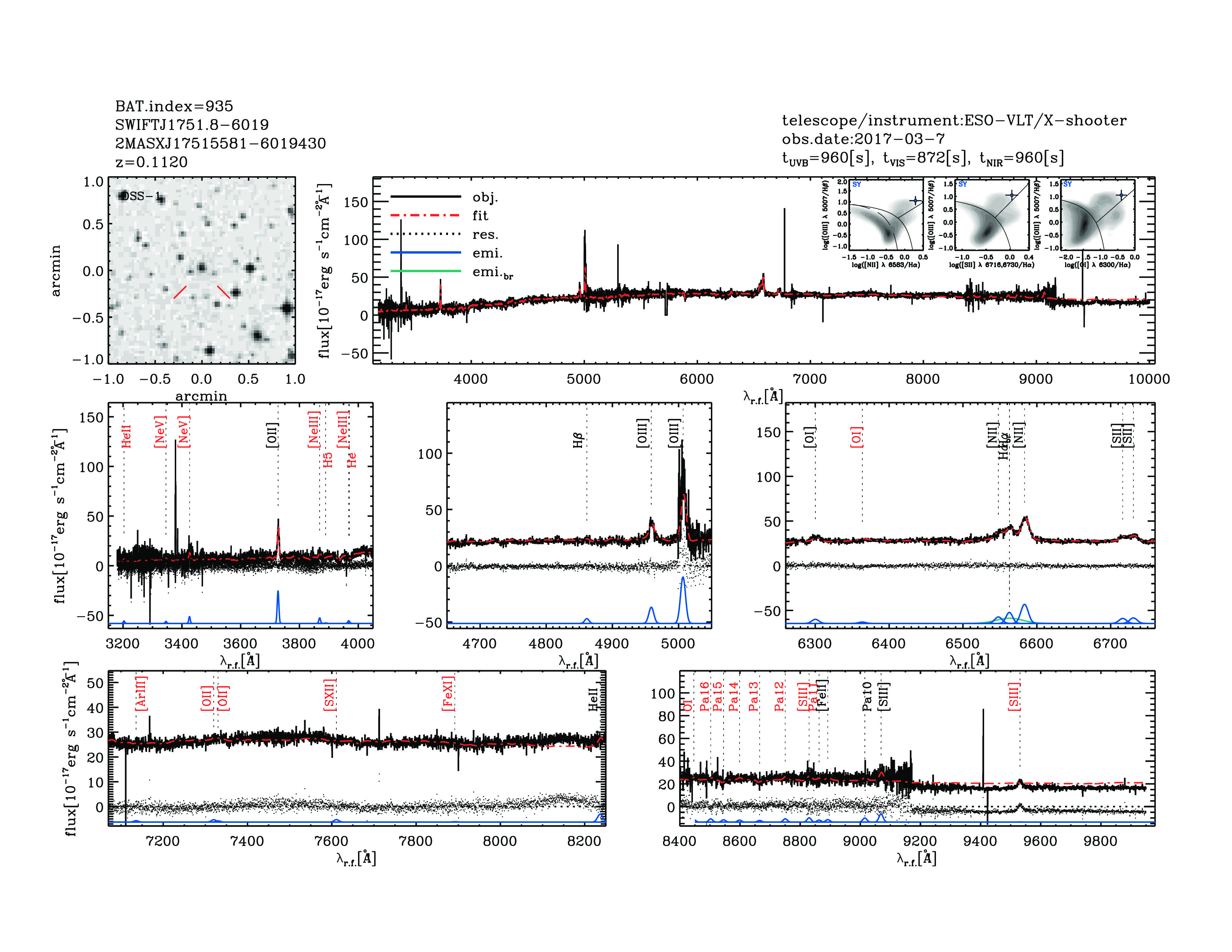 | 935 | SWIFTJ1751.8-6019 | 2MASXJ17515581-6019430 | 267.982548 | -60.328703 | 0.11199 | 3.1 | 7.2 | 15.01 | 14.7 | 23.14[23.26-23.08] | 1.76(0.23,0.33) | optical | NED |