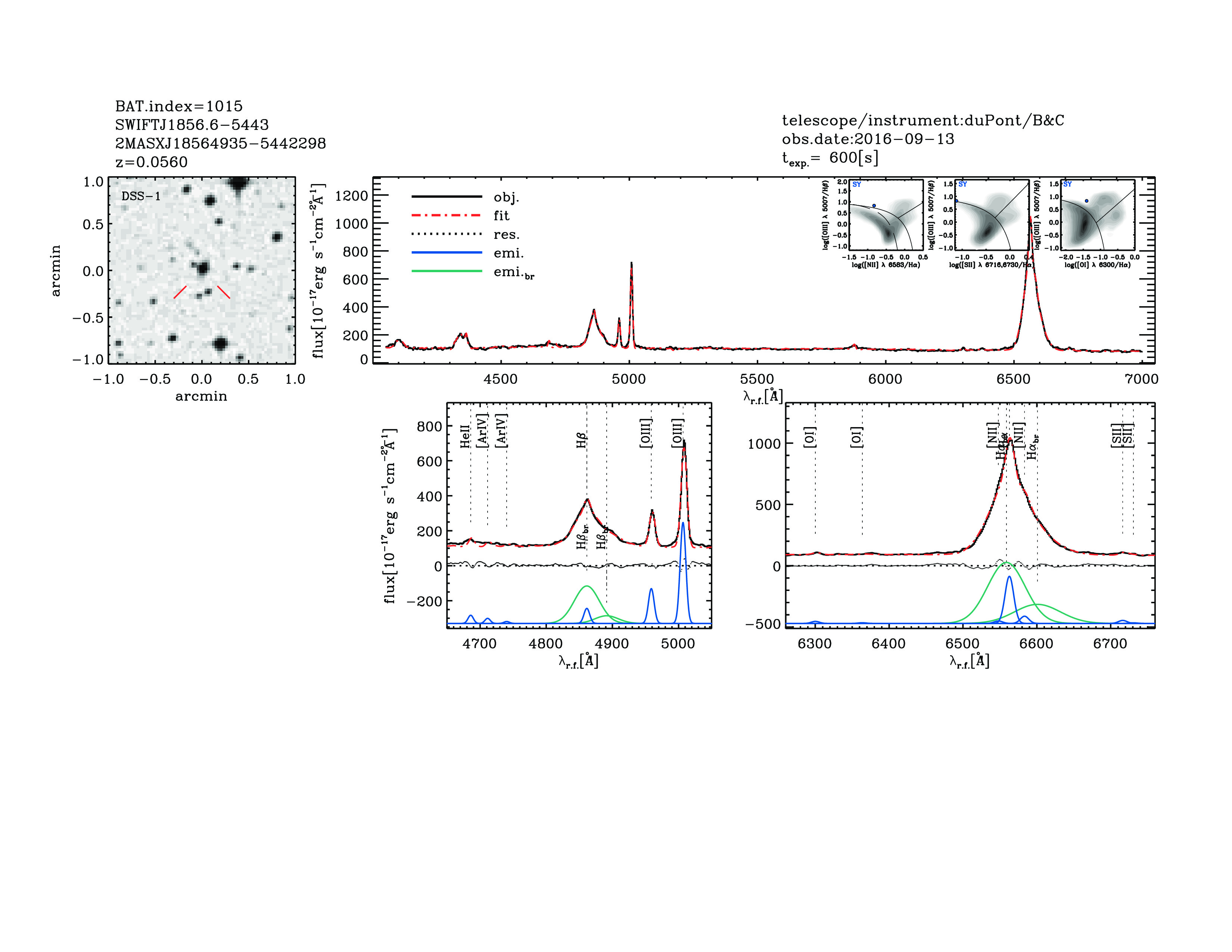 | 1015 | SWIFTJ1856.6-5443 | 2MASXJ18564935-5442298 | 284.205719 | -54.708313 | 0.05600 | 8.1 | 8.1 | 15.62 | 14.2 | 20[20-20] | 1.76(0.07,0.06) | optical | NED |