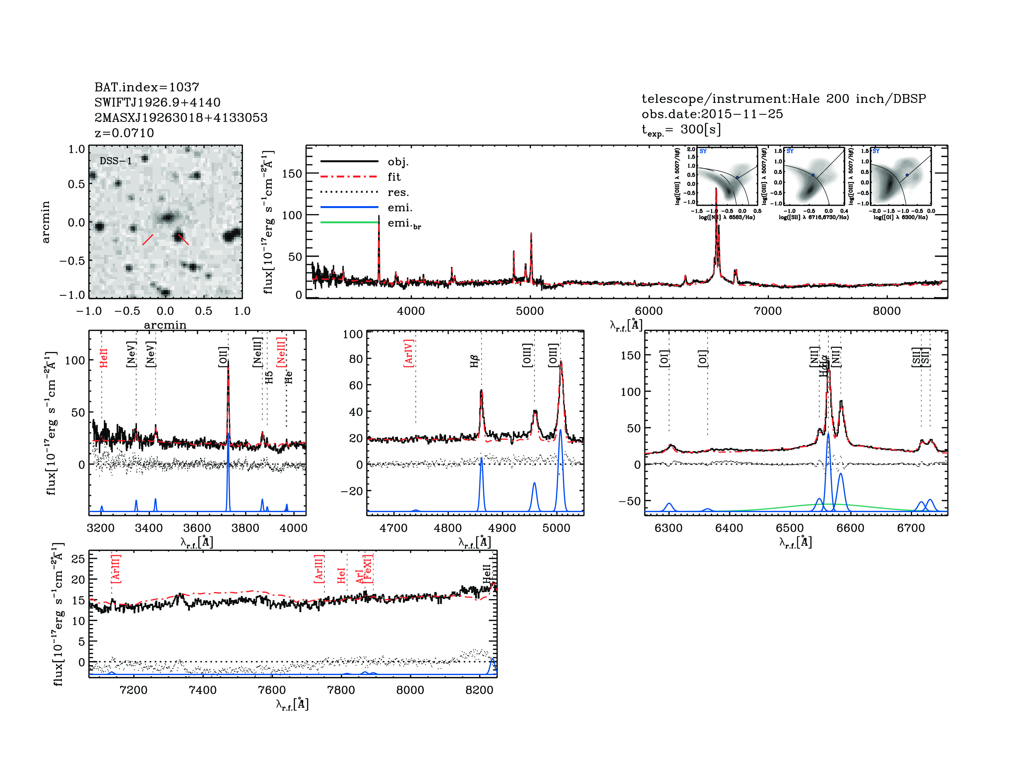 | 1037 | SWIFTJ1926.9+4140 | 2MASXJ19263018+4133053 | 291.625904 | 41.5513839 | 0.07100 | 5.5 | 5.6 | 13.01 | 11.5 | 20.49[21.14-19.95] | 1.71(0.1,0.09) | optical | NED |