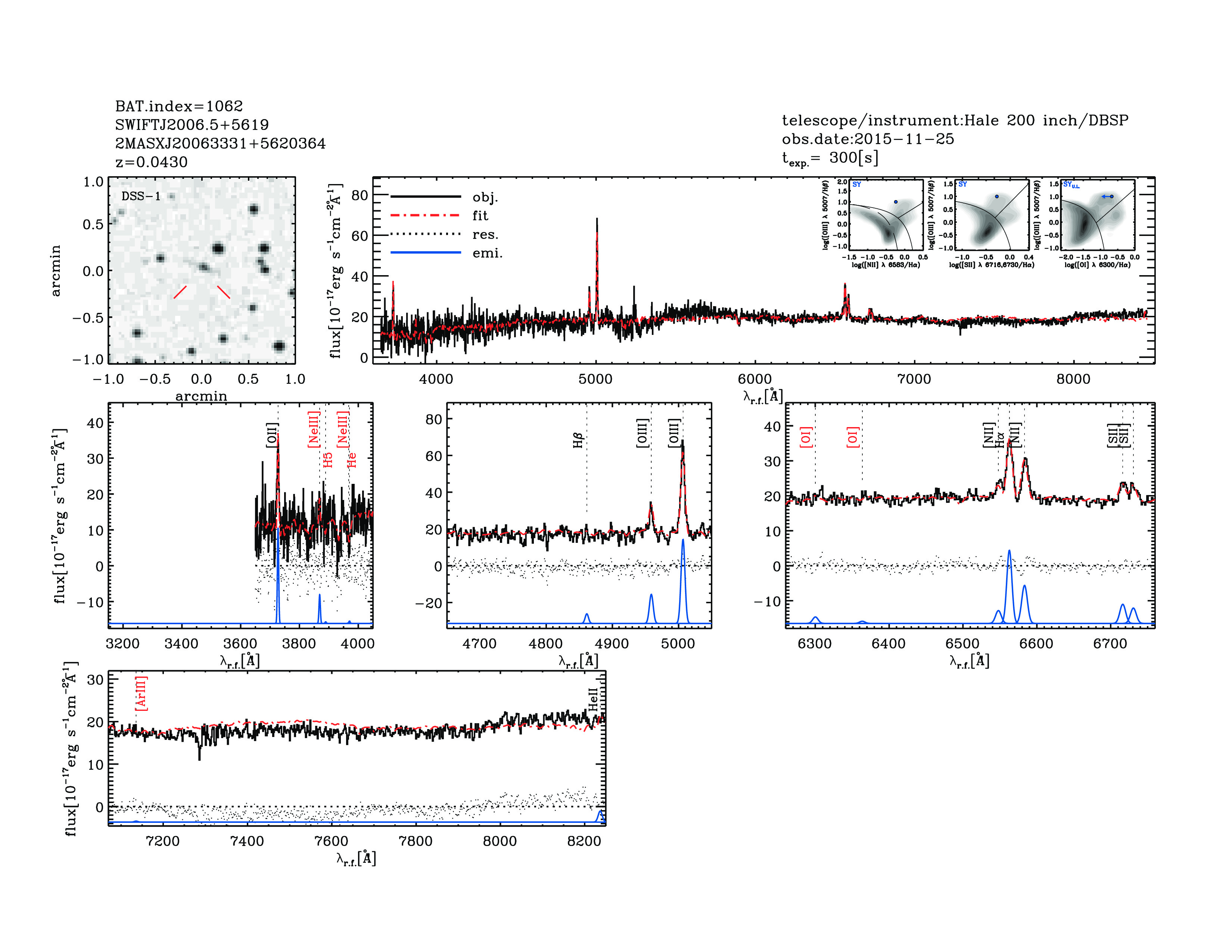 | 1062 | SWIFTJ2006.5+5619 | 2MASXJ20063331+5620364 | 301.638999 | 56.3435846 | 0.04300 | 1.9 | 8.8 | 10.21 | 11.5 | 23.48[23.57-23.38] | 2.37(0.58,0.38) | optical | NED |