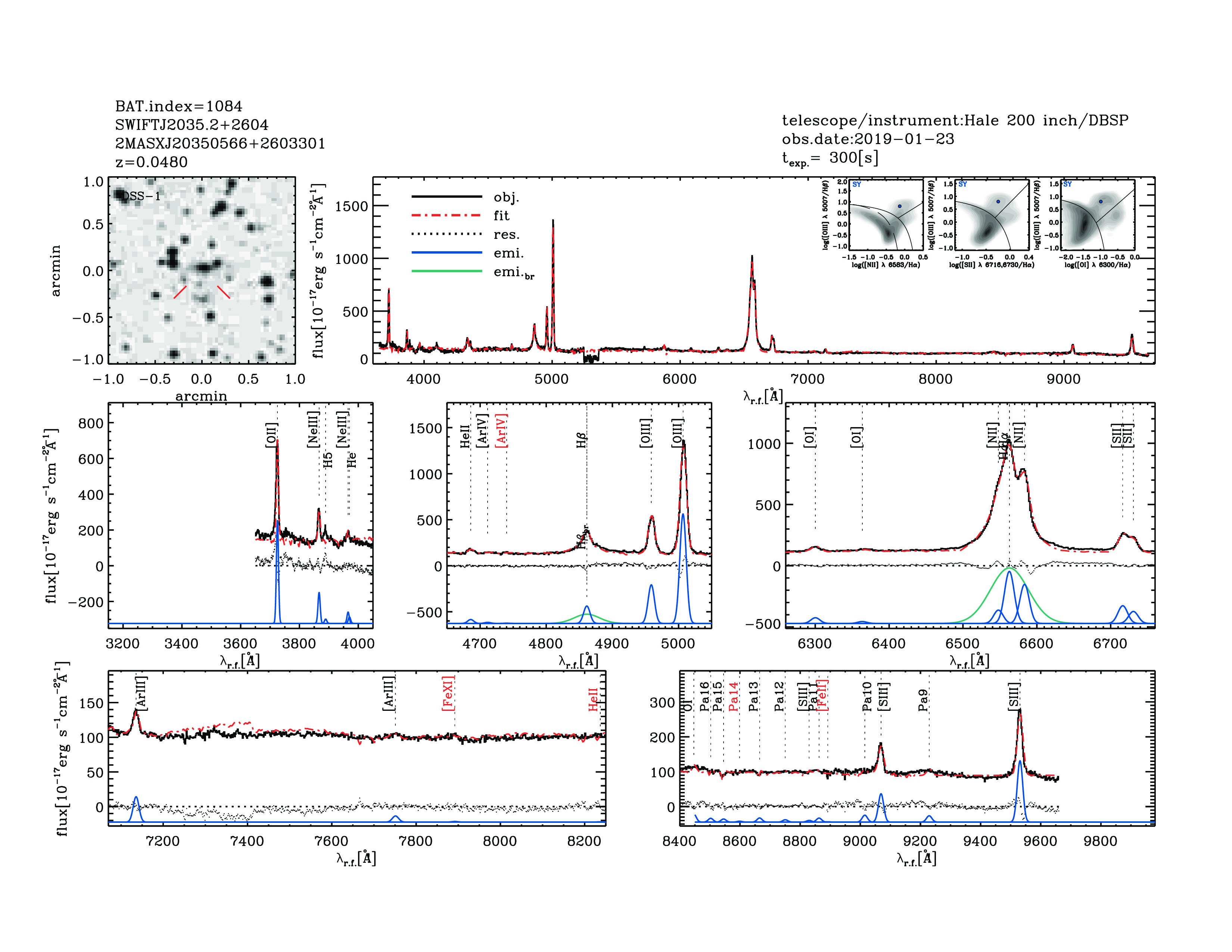 | 1084 | SWIFTJ2035.2+2604 | 2MASXJ20350566+2603301 | 308.773539 | 26.0583266 | 0.04800 | 5.2 | 5.4 | 11.33 | 9.5 | 21.3[21.64-21.01] | 2.08(0.39,0.47) | optical | NED |