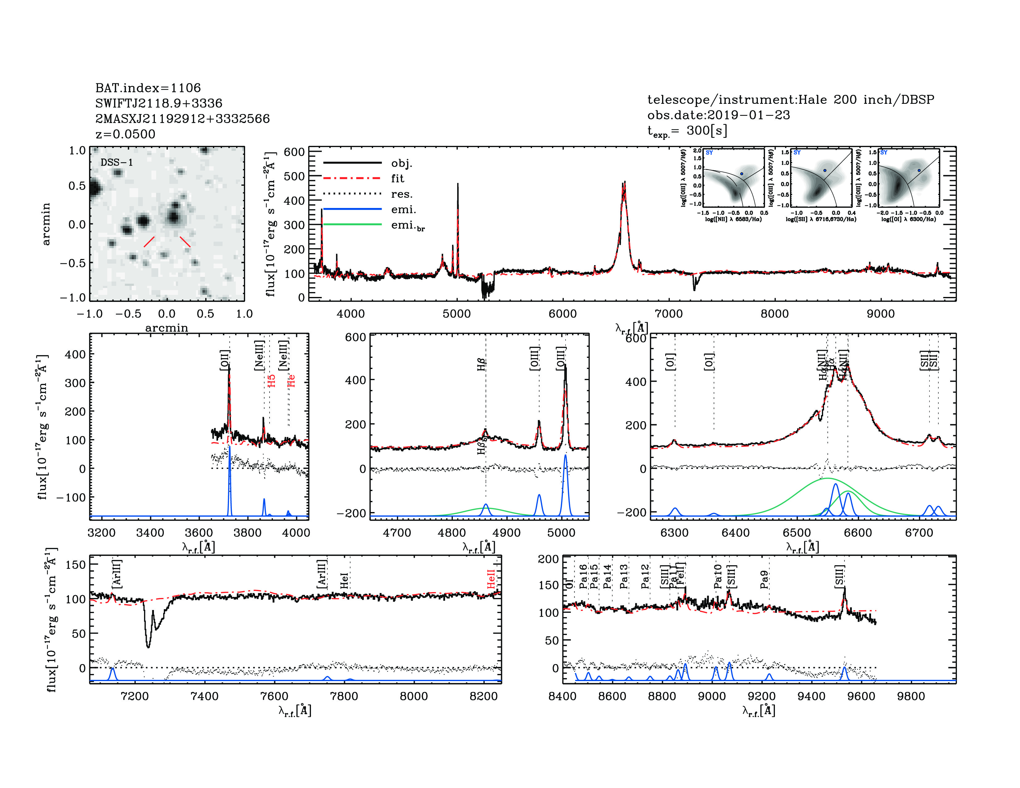 | 1106 | SWIFTJ2118.9+3336 | 2MASXJ21192912+3332566 | 319.871366 | 33.5491696 | 0.05000 | 6 | 6.1 | 13.06 | 10.9 | 21.57[21.74-21.4] | 1.69(0.23,0.19) | optical | NIR | NED |
