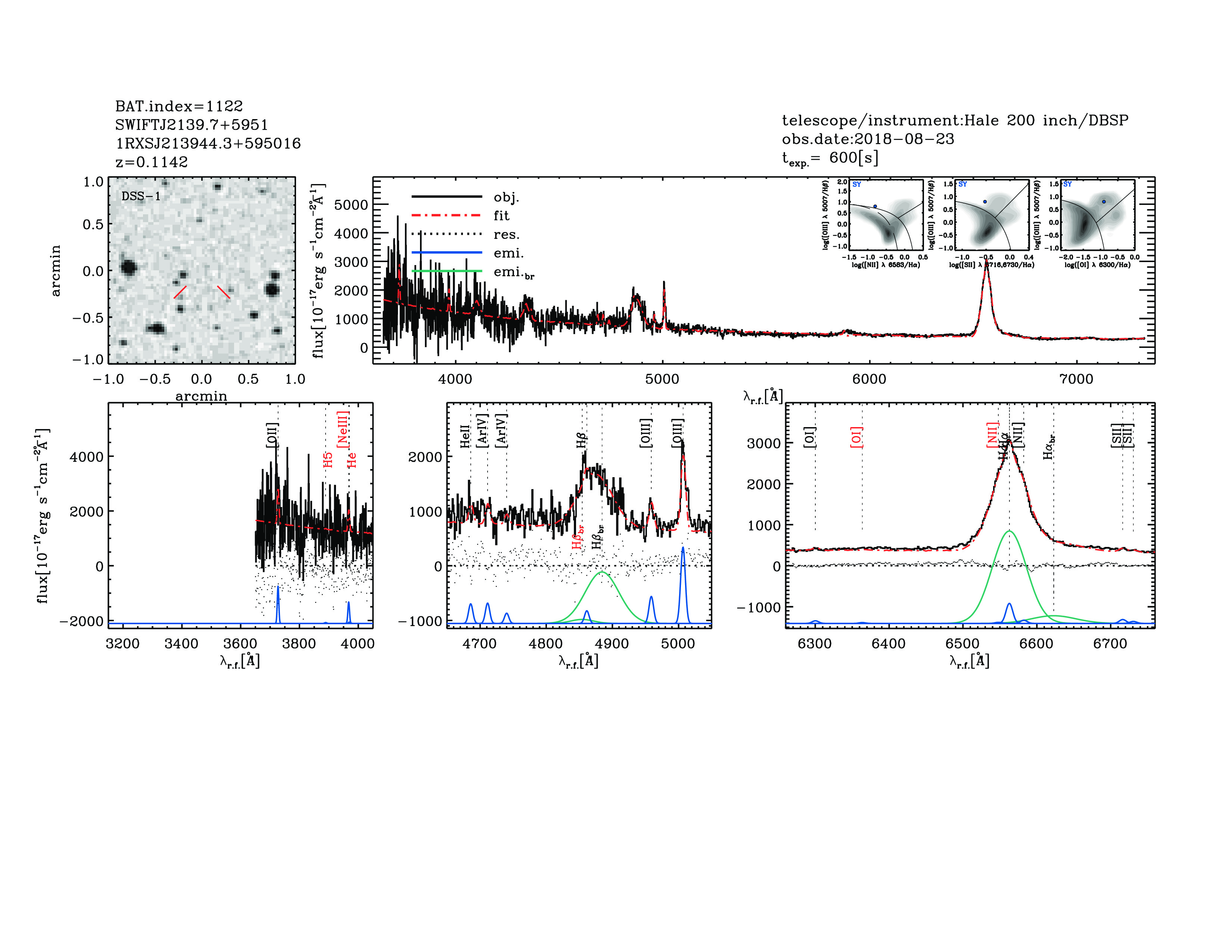| 1122 | SWIFTJ2139.7+5951 | 1RXSJ213944.3+595016 | 324.937337 | 59.8375222 | 0.11420 | 7 | 7.5 | 10.48 | 9.8 | 21.46[21.93-20.53] | 1.74(1.34,0.29) | optical | NED |