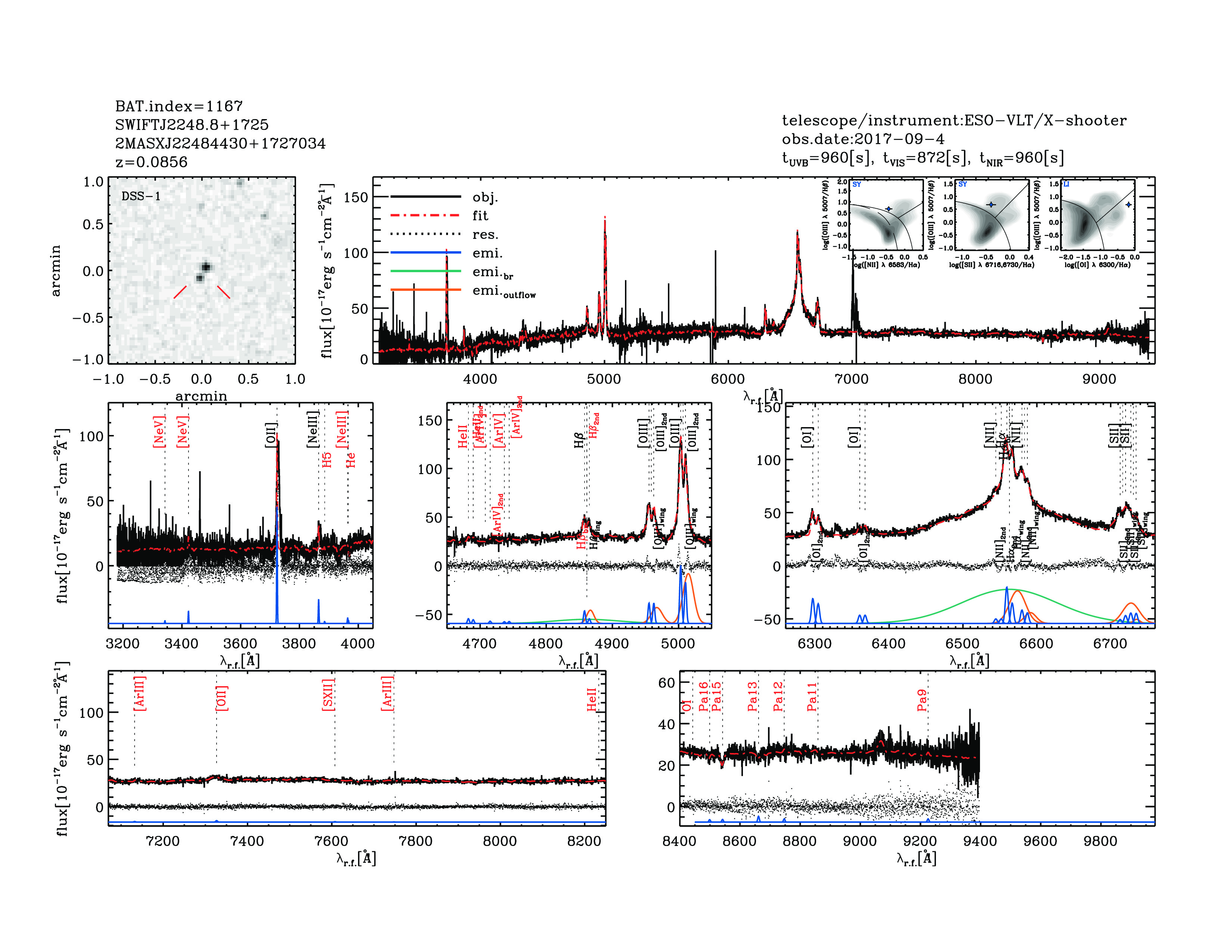 | 1167 | SWIFTJ2248.8+1725 | 2MASXJ22484430+1727034 | 342.184758 | 17.4509405 | 0.08555 | 1.3 | 1.5 | 11.55 | 9.2 | 22.2[22.3-22.04] | 1.93(0.2,0.37) | optical | NED |